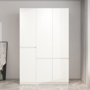 Minimalist Steel Self-supporting Wardrobe Almirah with Adaptable Shelves, 5/6 Soft Close Door, and Hanging Rod Armoire
