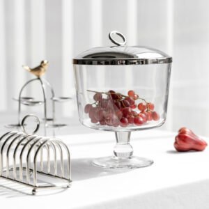 Creative stainless steel covered glass transparent ice storage bucket, creative light luxury home and commercial ice bucket, fruit bucket, decorative home decoration item