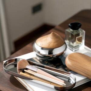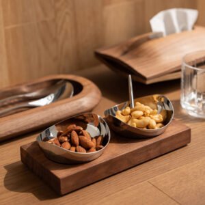 Creative luxury stainless steel wooden restaurant seasoning bowl and jar, home seasoning seasoning, nut snack storage bowl, Western dining table seasoning jar