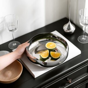 Circular creative stainless steel light luxury fruit plate, fruit basin, snack plate, modern home coffee table, fruit basket decoration