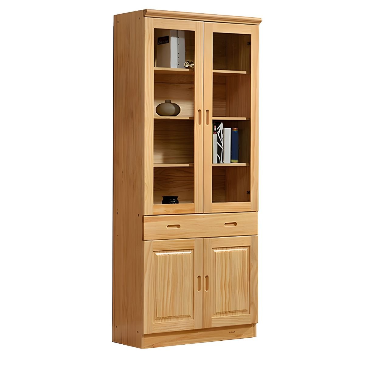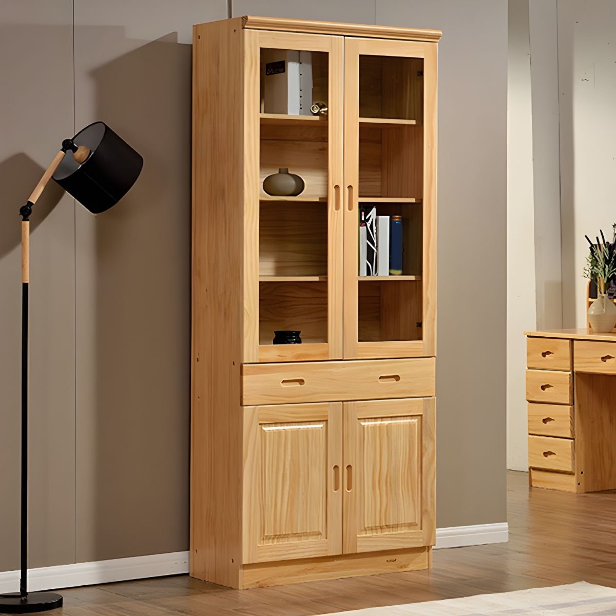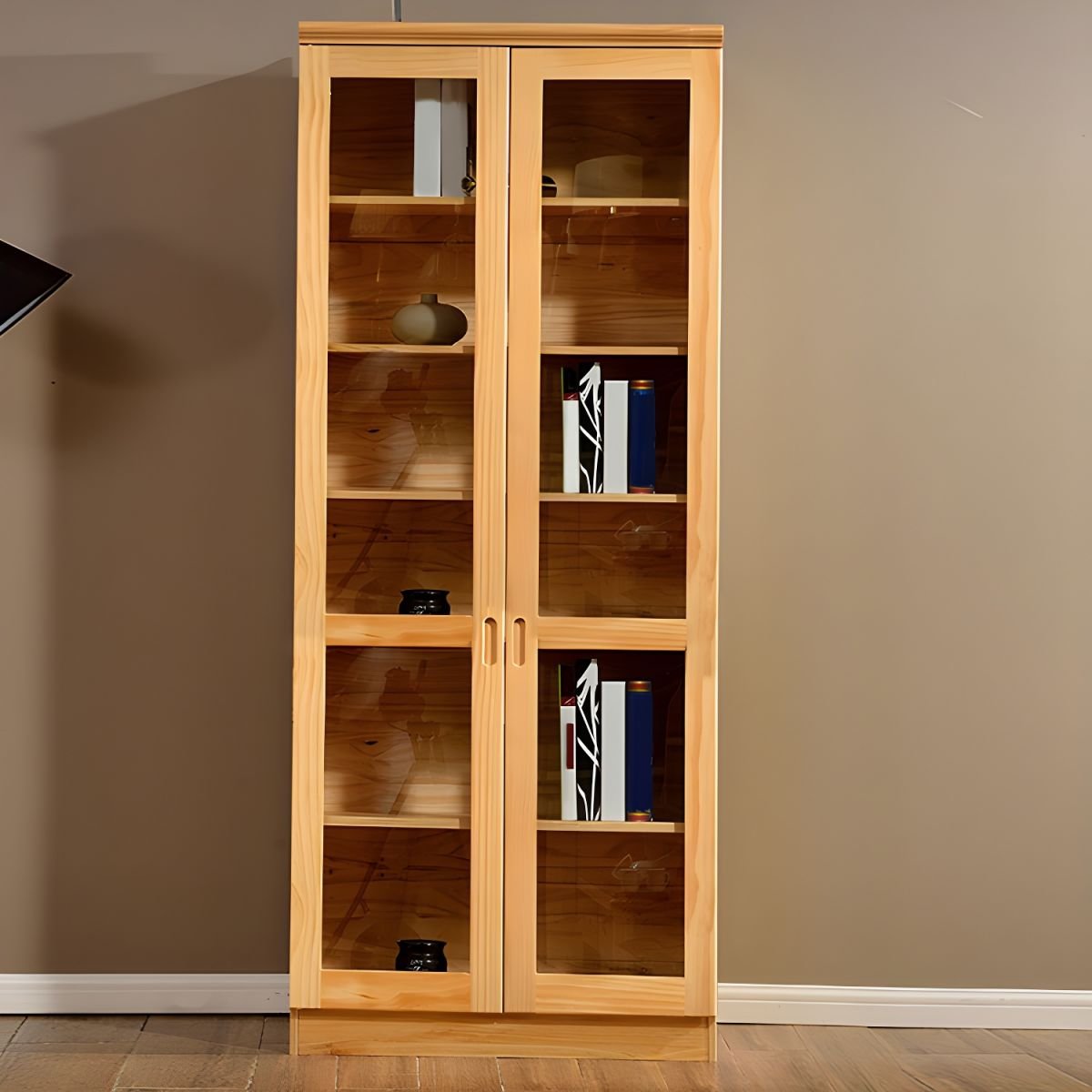 Executive Wooden Display Bookcase Cabinet: Semi-Open Library Shelf for Home Office | Natural Finish Bookshelf
