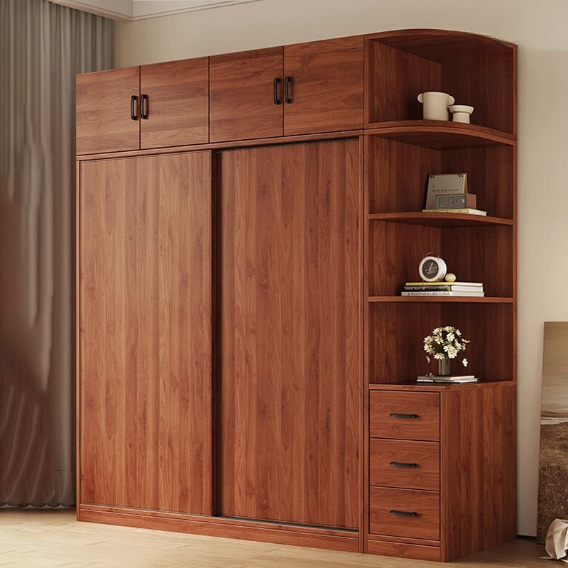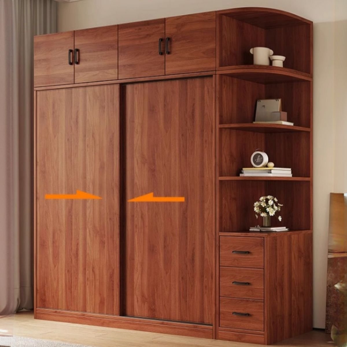 Zonal Intelligence: The Integrated Side-Drawer Armoire One of the standout features of this model is the Integrated Side-Drawer Armoire. In high-end living, convenience is the ultimate luxury. By placing a side cabinet equipped with soft-close drawers at the edge of the sliding door system, we provide a dedicated zone for daily essentials—watches, jewelry, and accessories. These drawers, featuring industrial-grade buffer rails, represent our commitment to silent operation and refined hardware. Above the drawers, the open shelving acts as a display gallery, allowing you to personalize your space with art pieces or curated scents, effectively turning a storage unit into a focal point of your room’s lifestyle atmosphere.