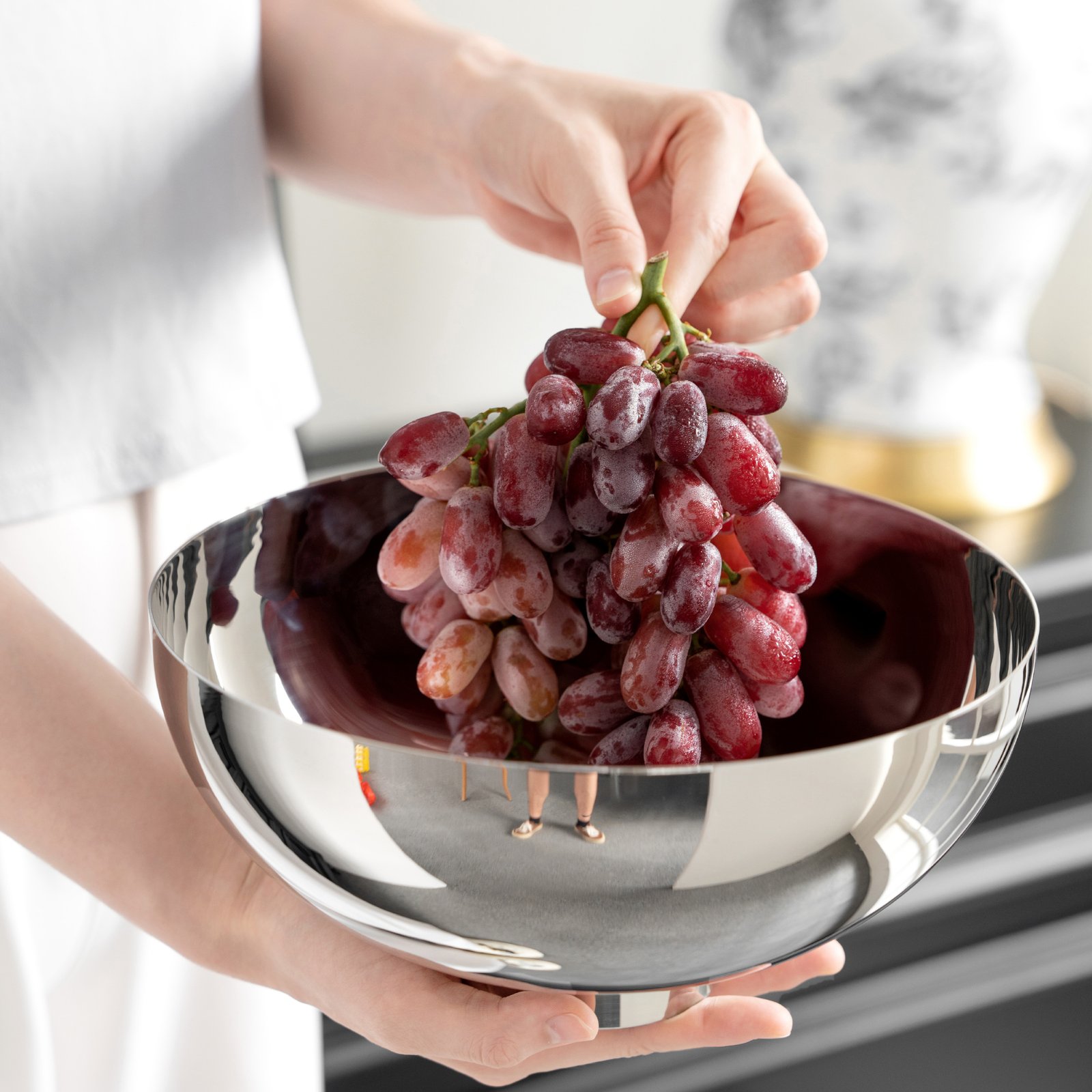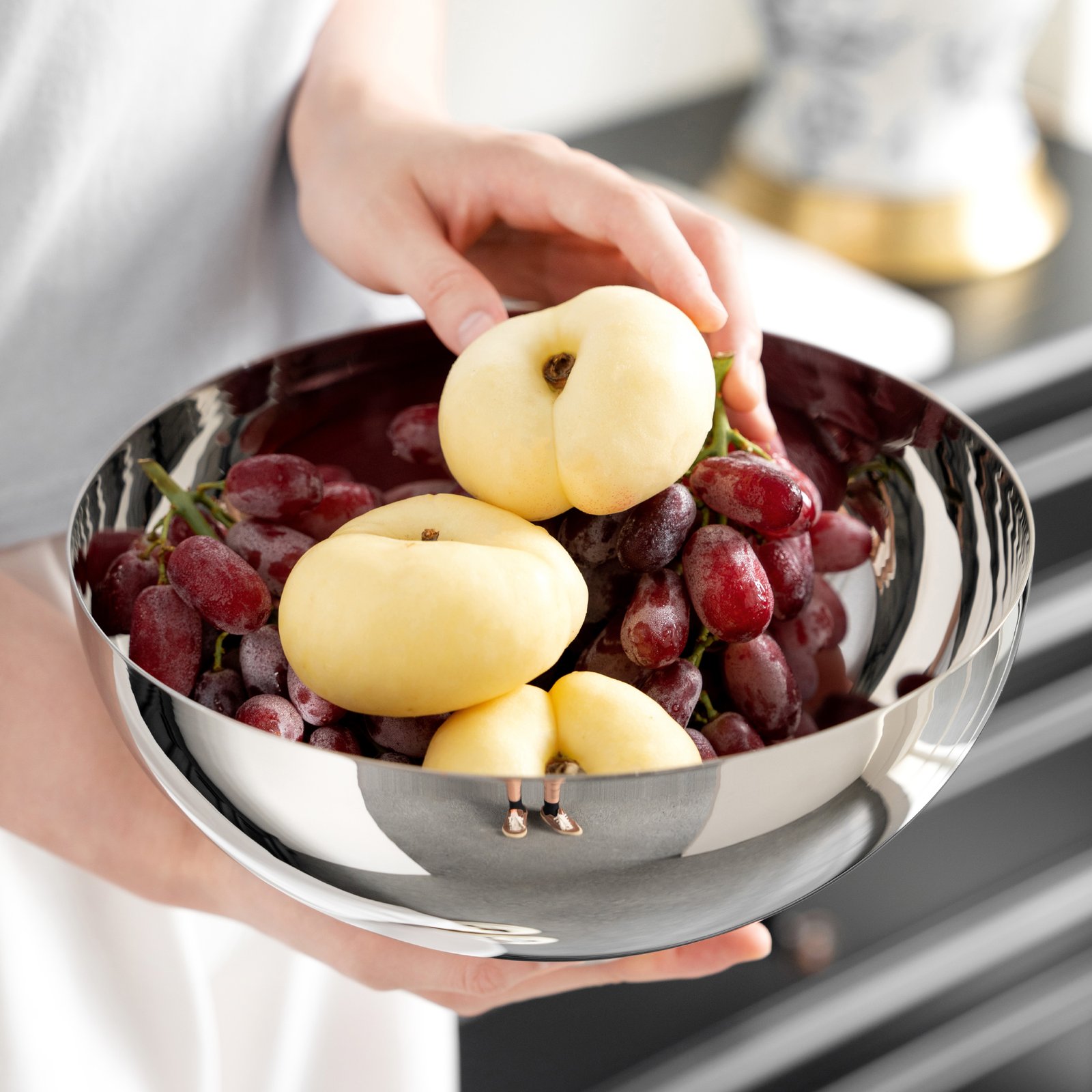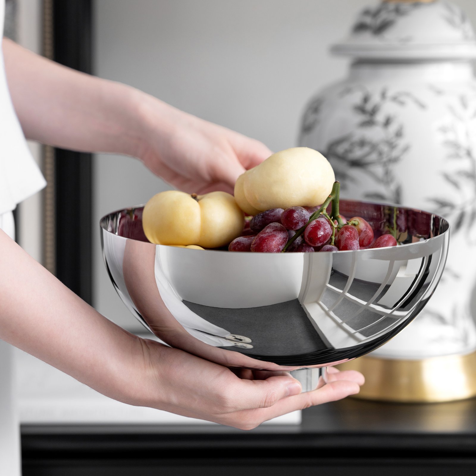 Circular creative stainless steel light luxury fruit plate, fruit basin, snack plate, modern home coffee table, fruit basket decoration