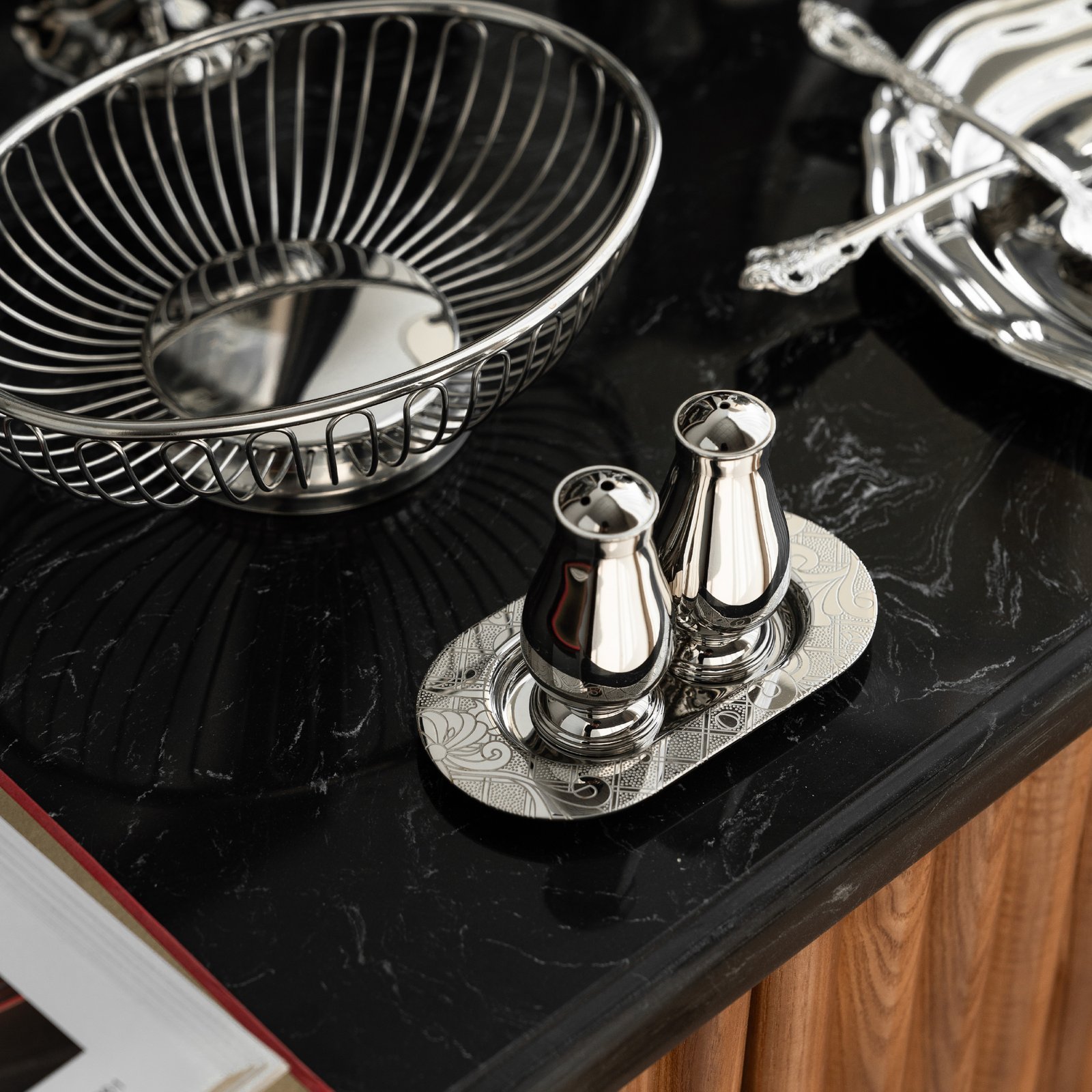 Creative stainless steel wooden desktop storage box, pen box, exquisite jewelry box, earrings, necklaces, high-end jewelry box ornaments