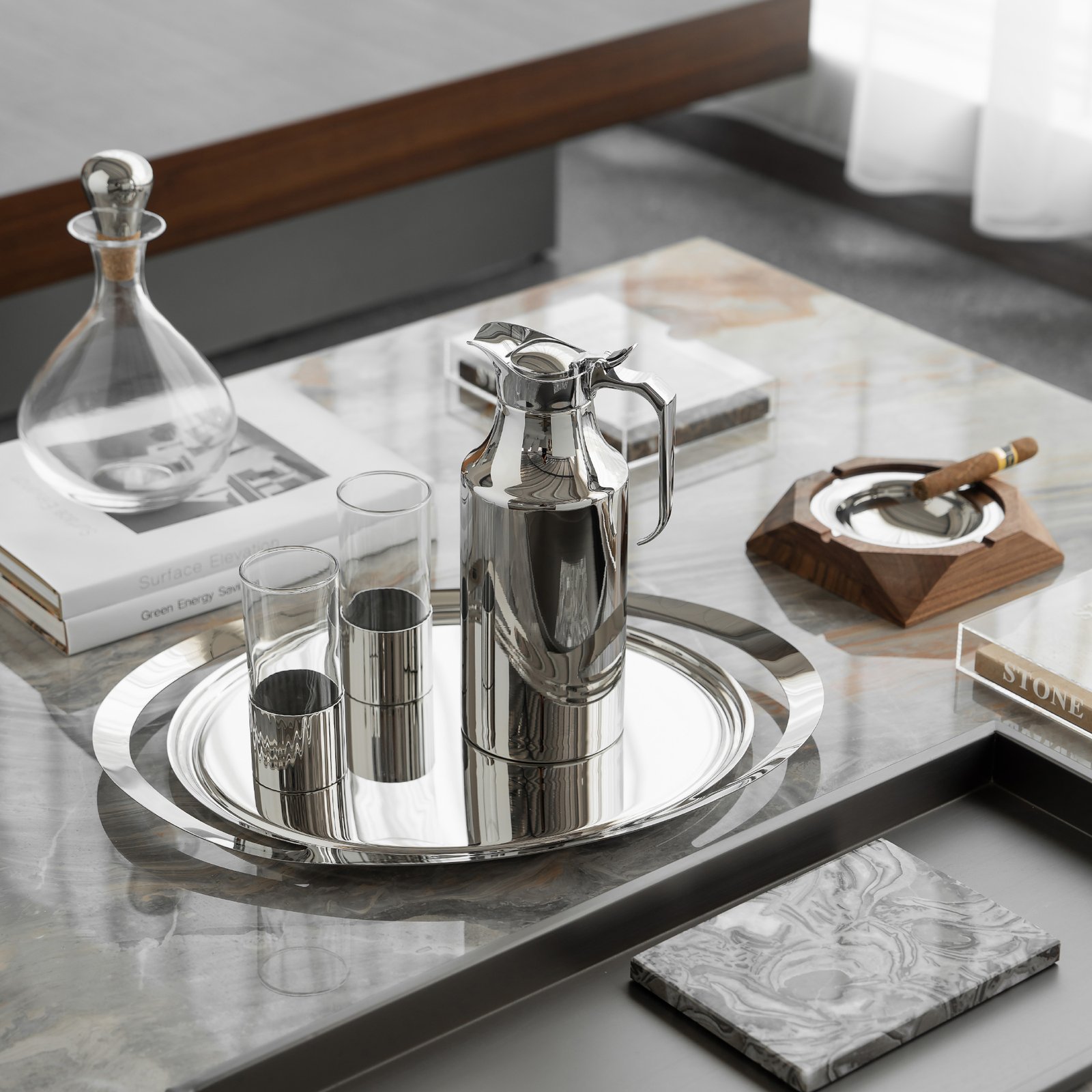 European-style creative stainless steel coffee pot, light luxury household cold water kettle, high-temperature resistant water cup and teapot set, home decoration items
