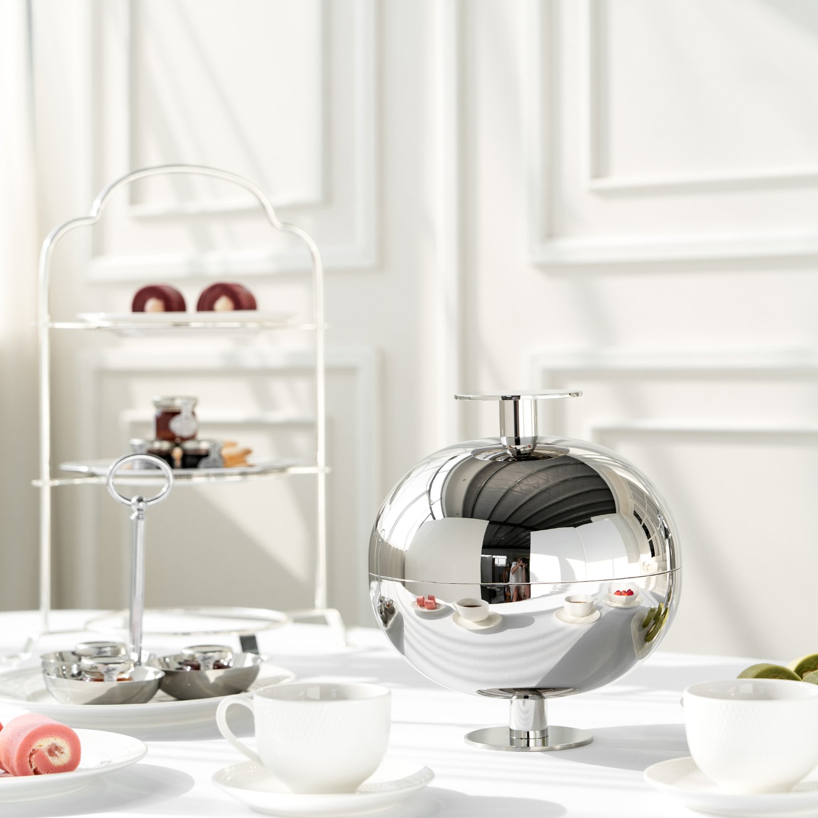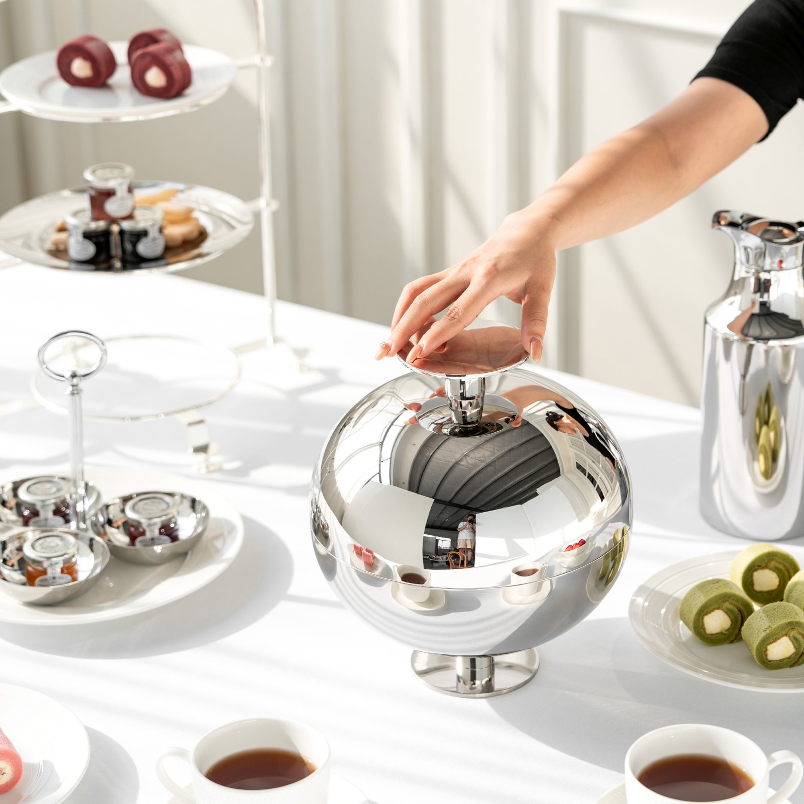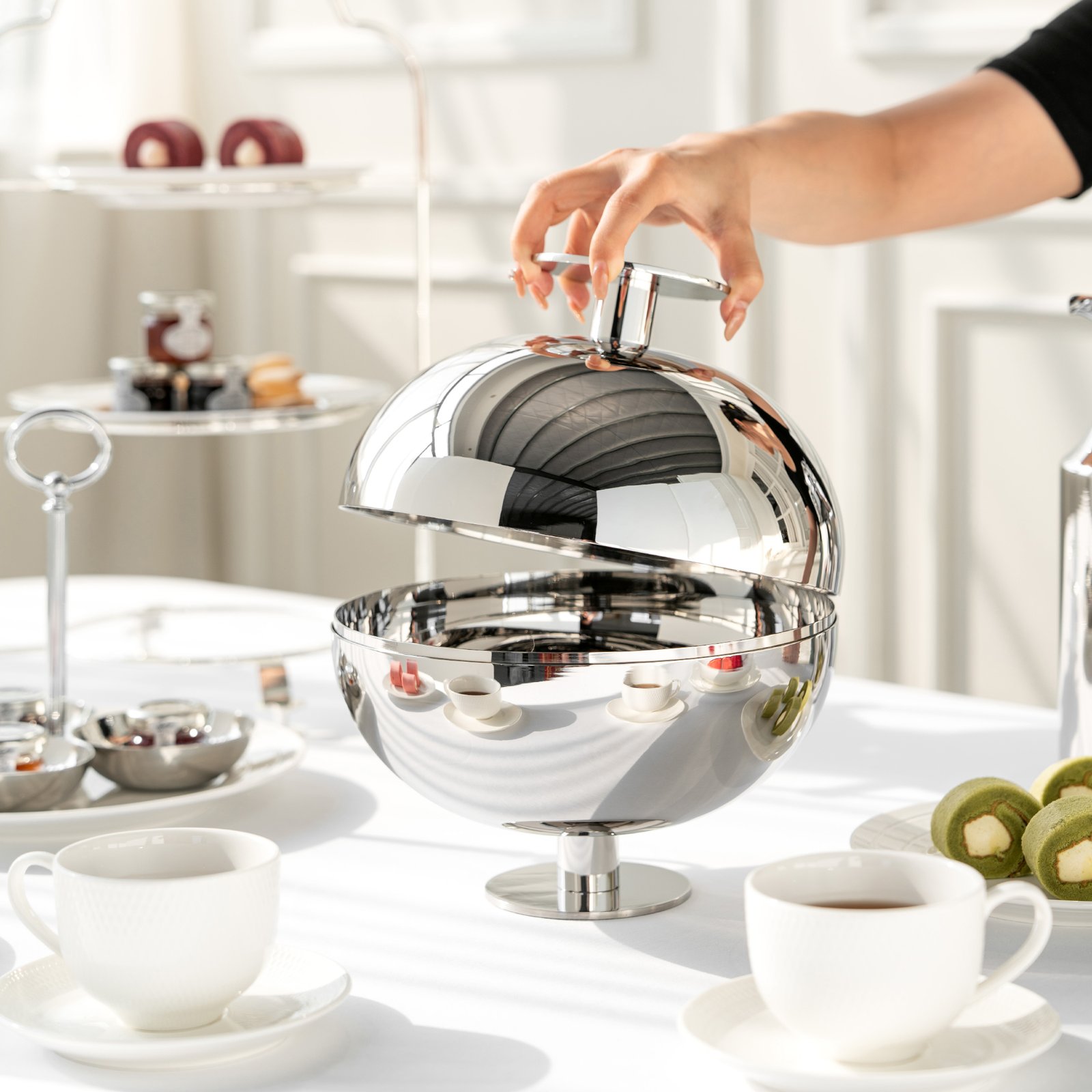 Creative style metal stainless steel light luxury fruit plate with lid, spherical shape, storage pocket, coffee table, dining table, snack plate, fruit basket, home decoration item