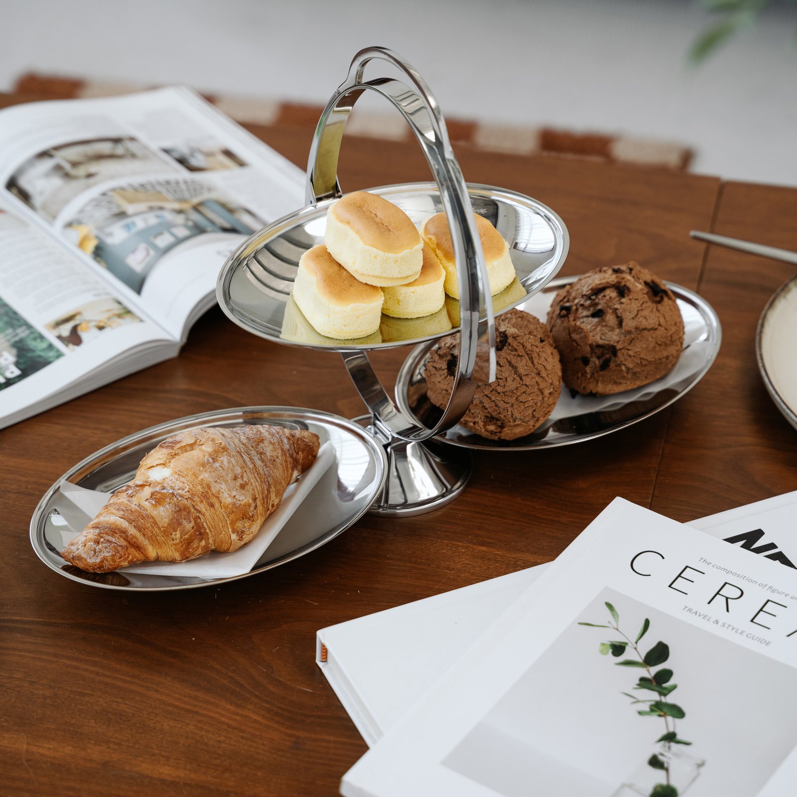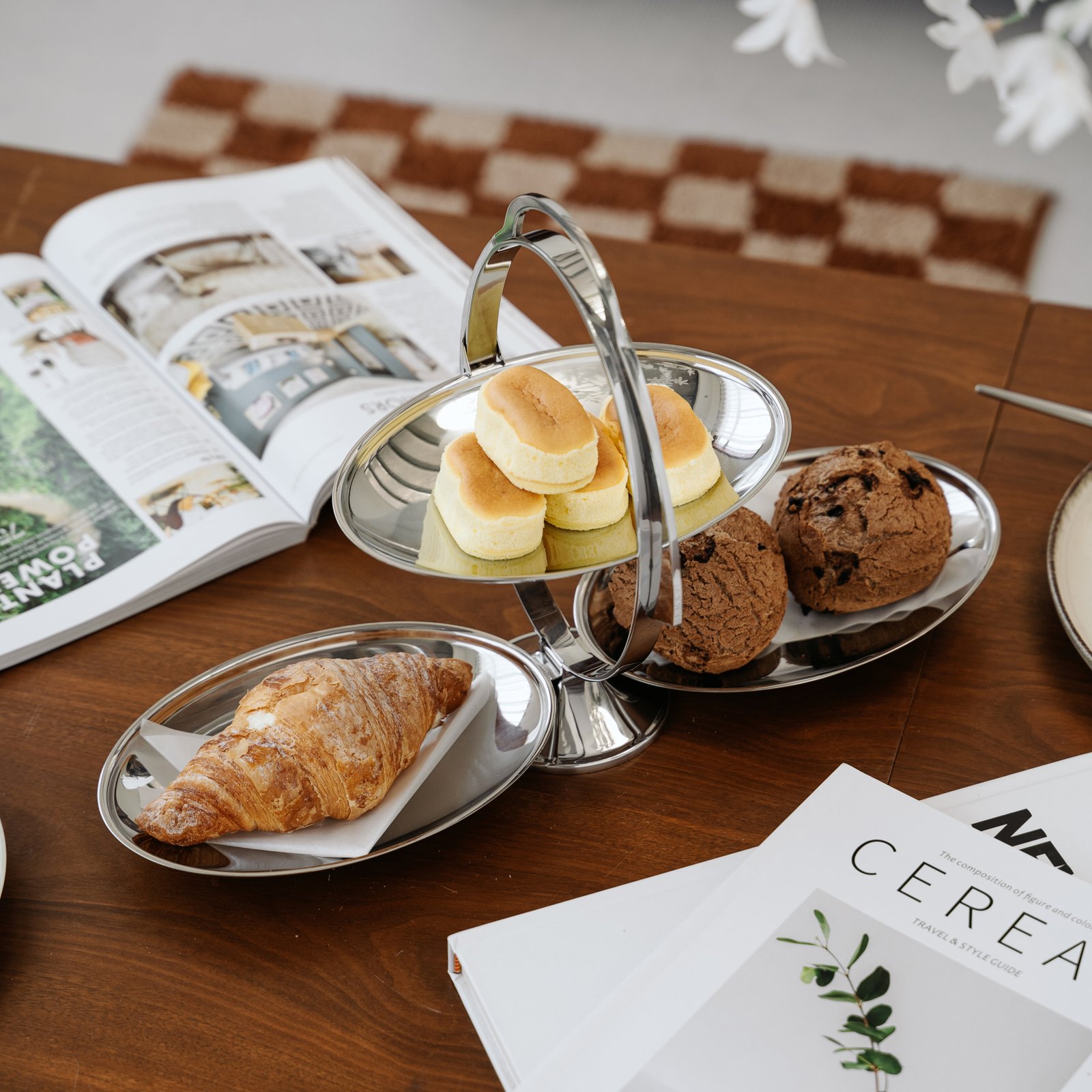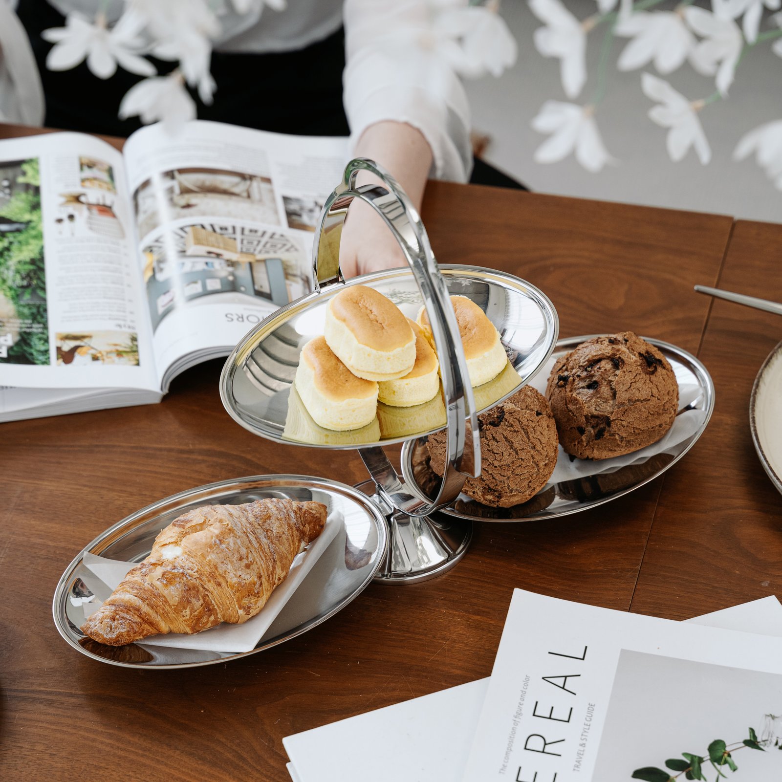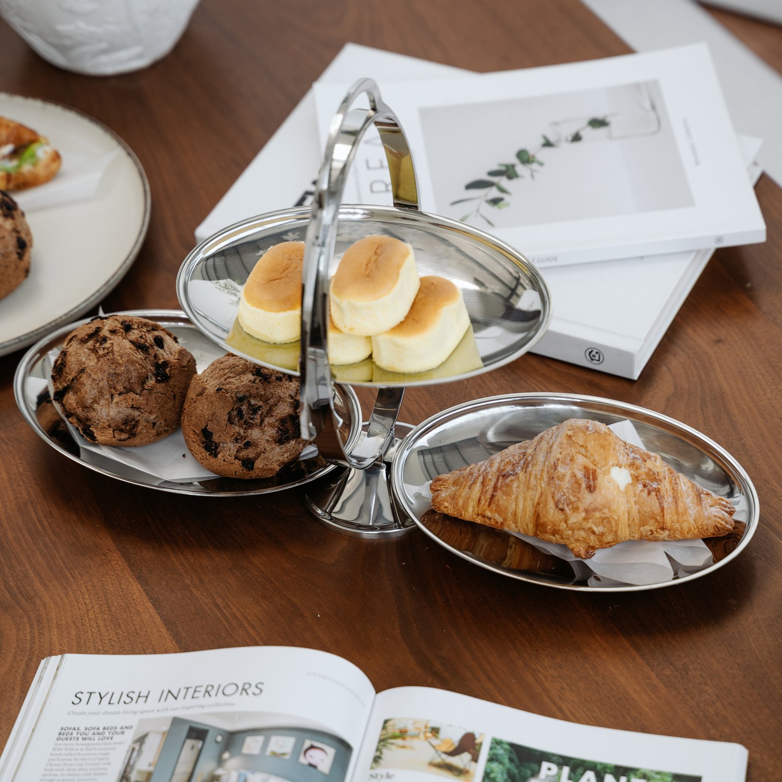 Creative style stainless steel folding three-layer dish dried fruit plate, light luxury home coffee table, snack bowl, nut plate, fruit plate style home decoration ornaments