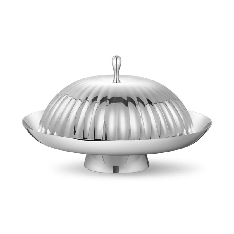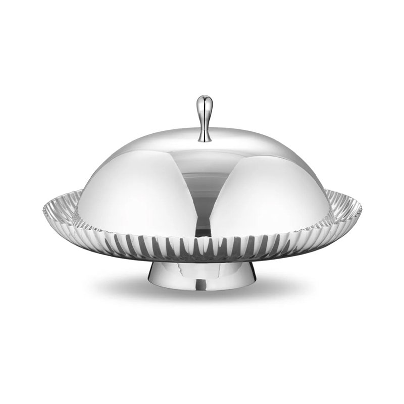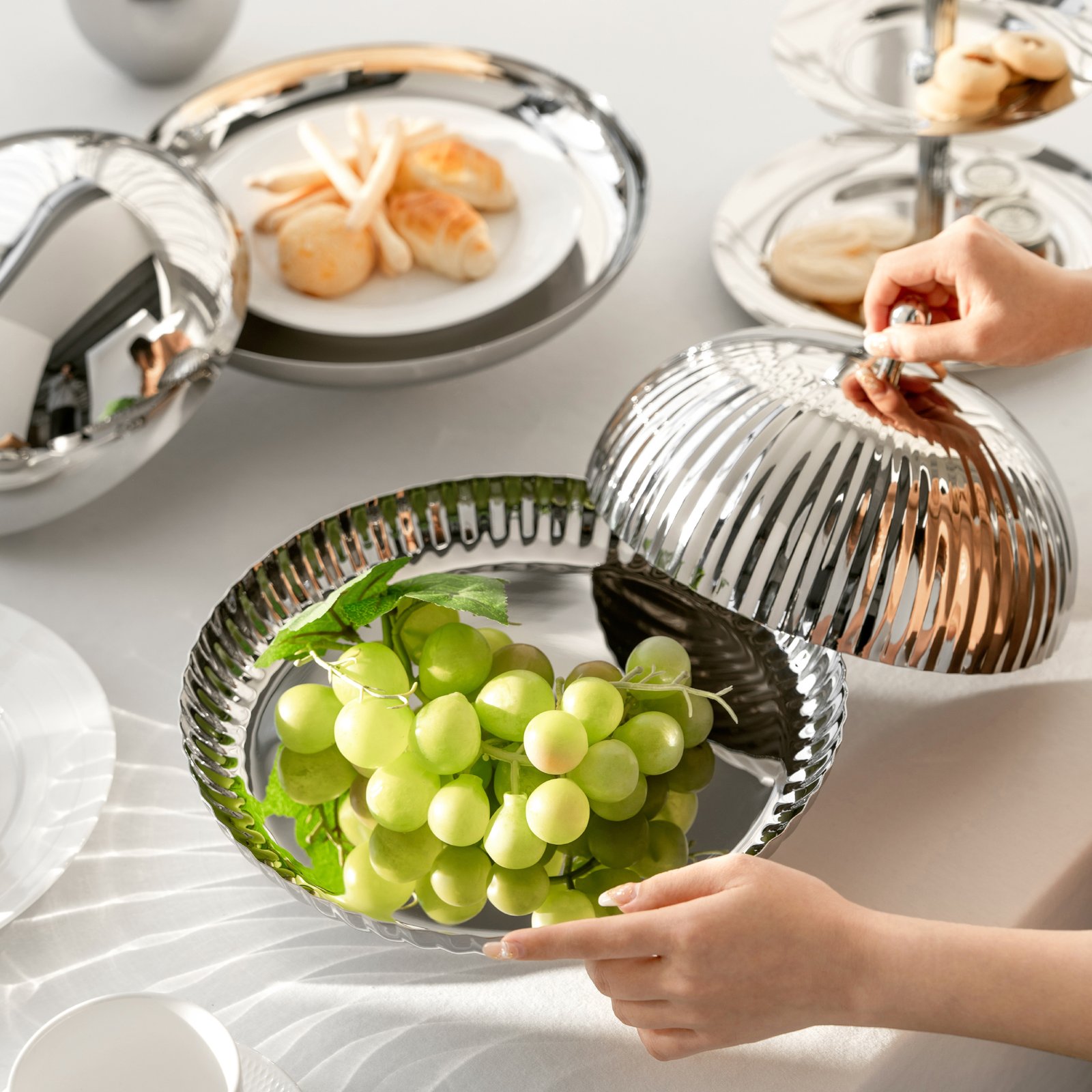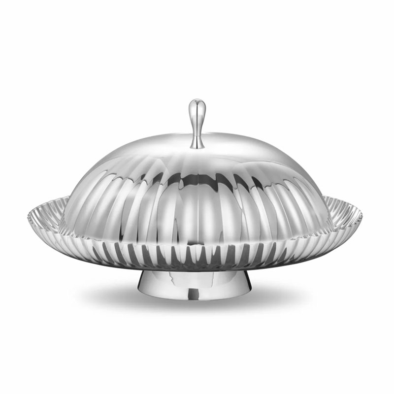 Creative style stainless steel light luxury striped dining lid, storage pocket, cake plate, fruit plate storage pocket, coffee table, dining table, snack plate, fruit basket, home decoration ornaments