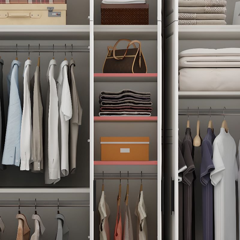 Minimalist Steel Self-supporting Wardrobe Almirah with Adaptable Shelves, 5/6 Soft Close Door, and Hanging Rod Armoire