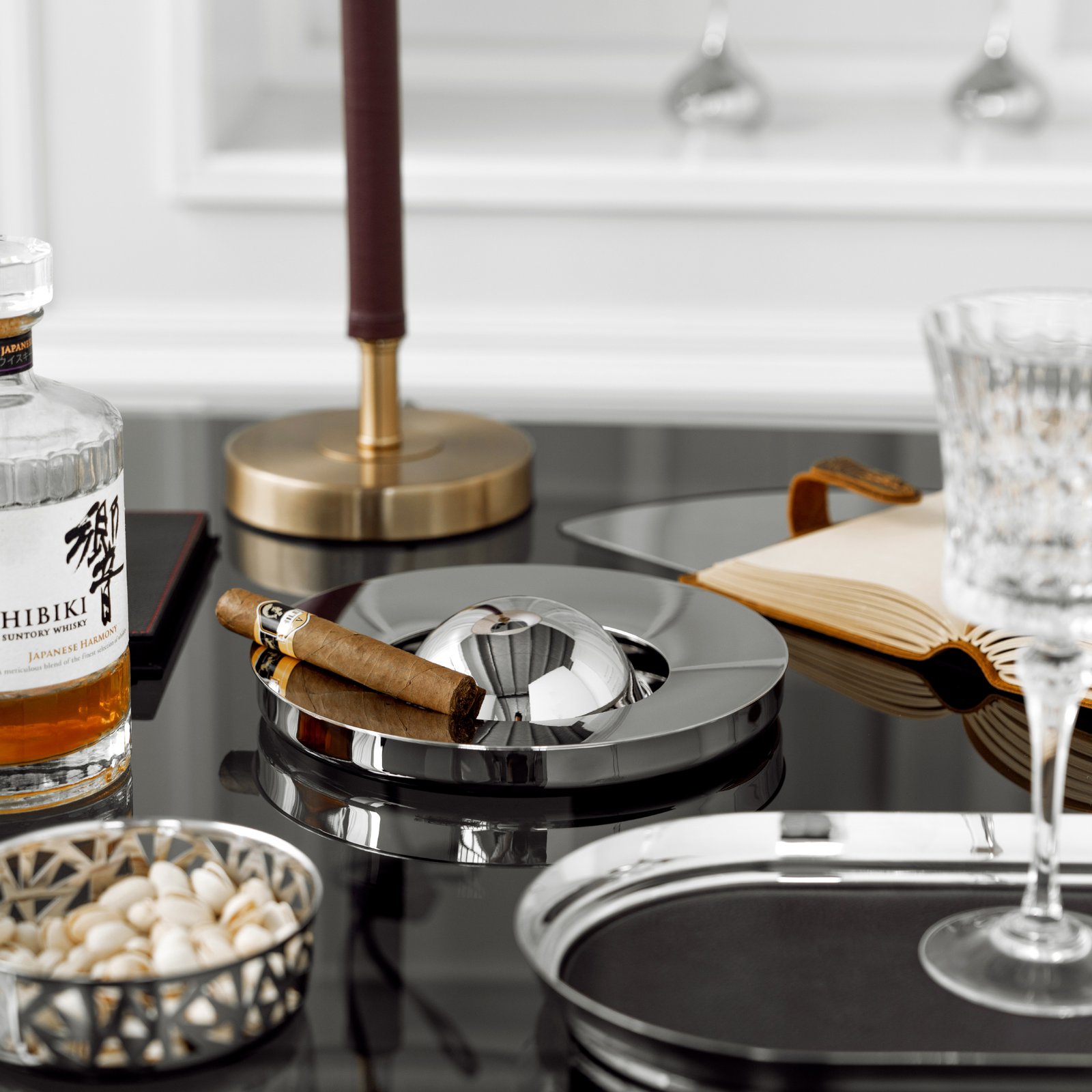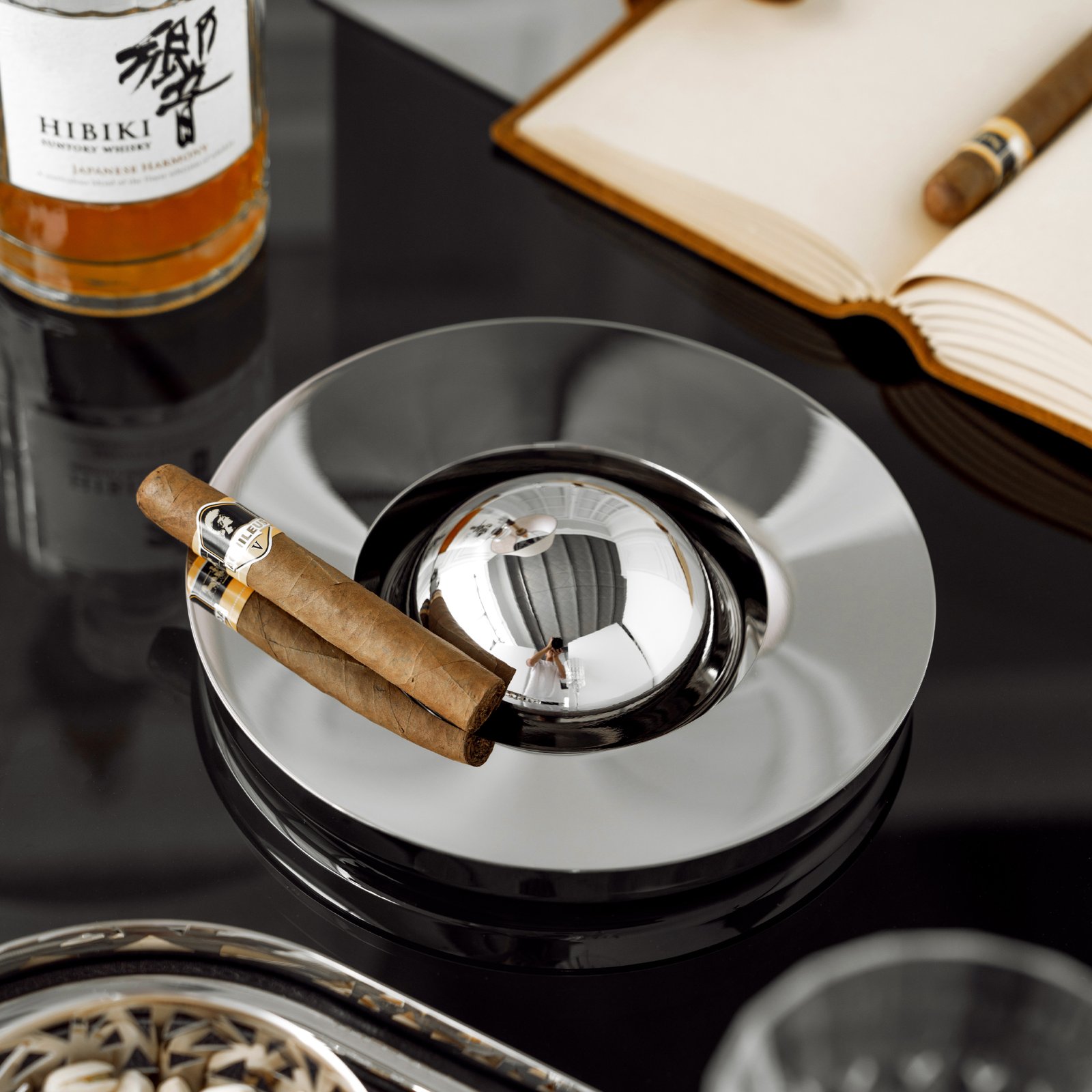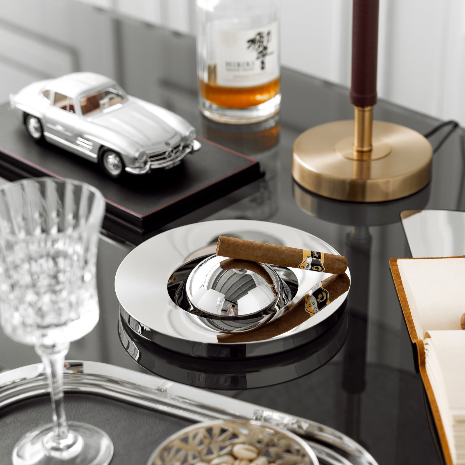 European-style creative stainless steel light luxury ashtray, high-end living room and office cigar tray, cigarette extinguisher, home decoration item