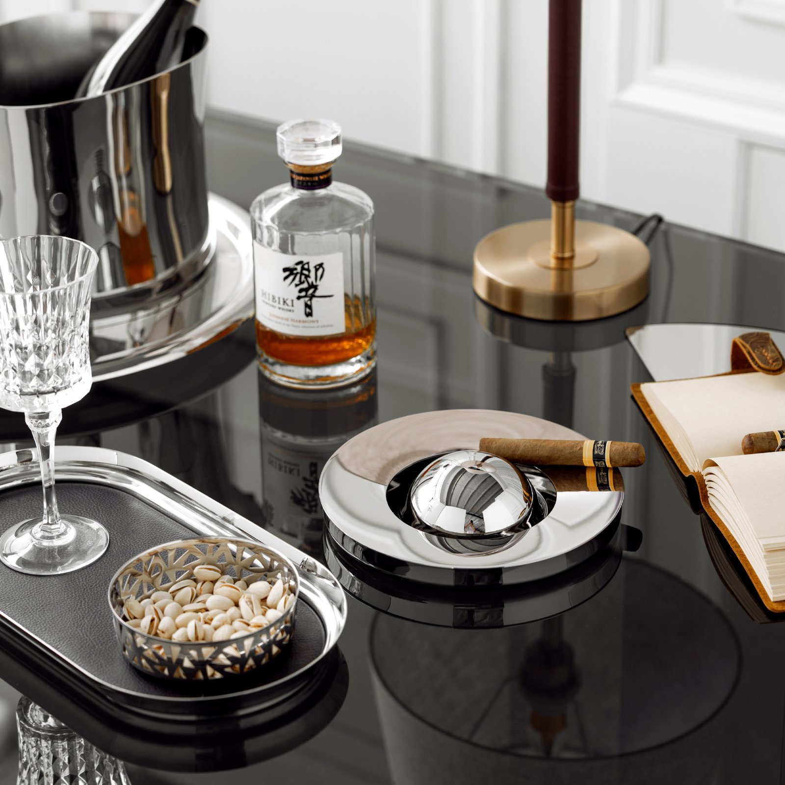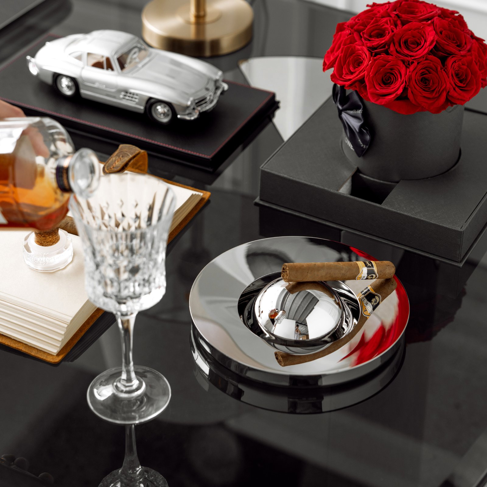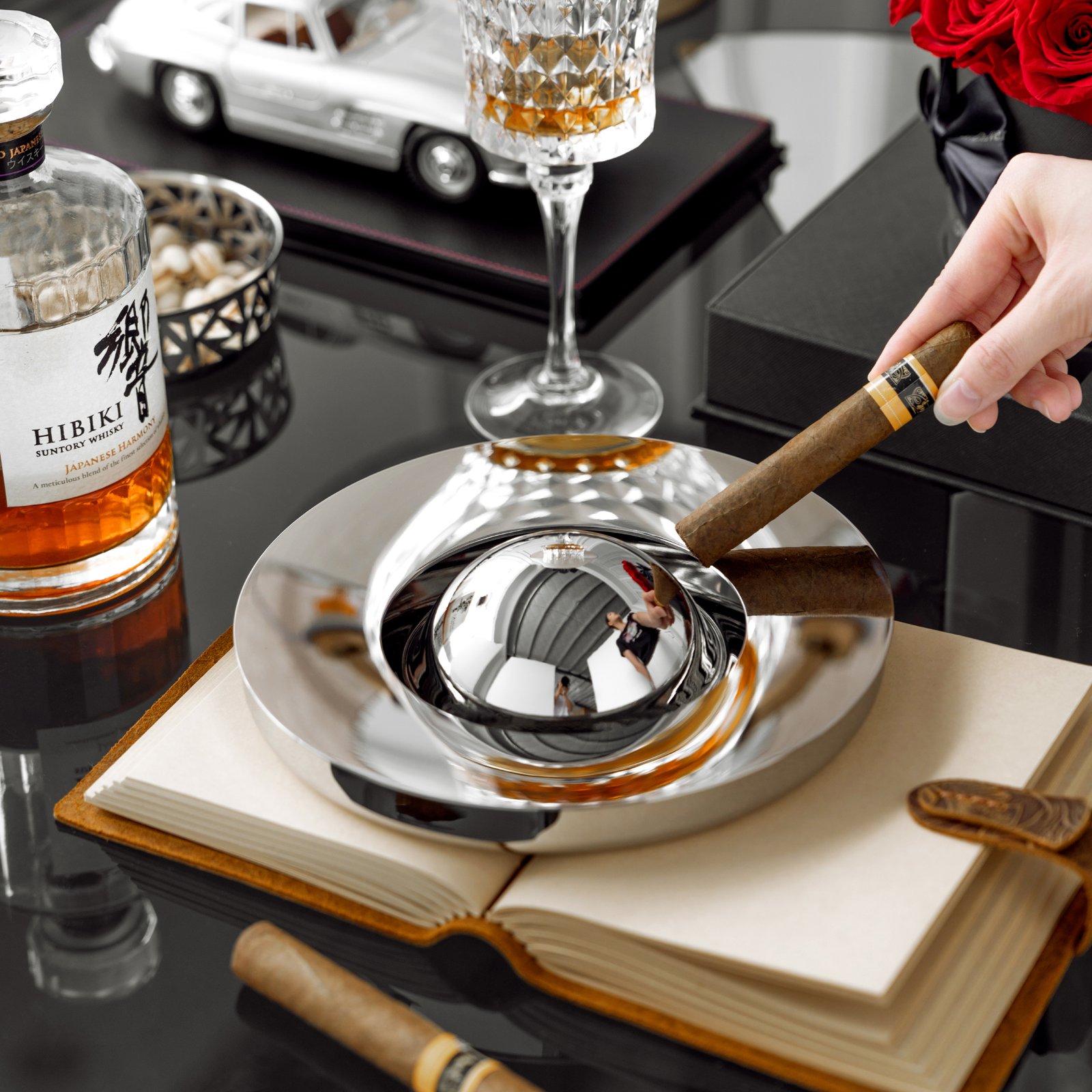 European-style creative stainless steel light luxury ashtray, high-end living room and office cigar tray, cigarette extinguisher, home decoration item