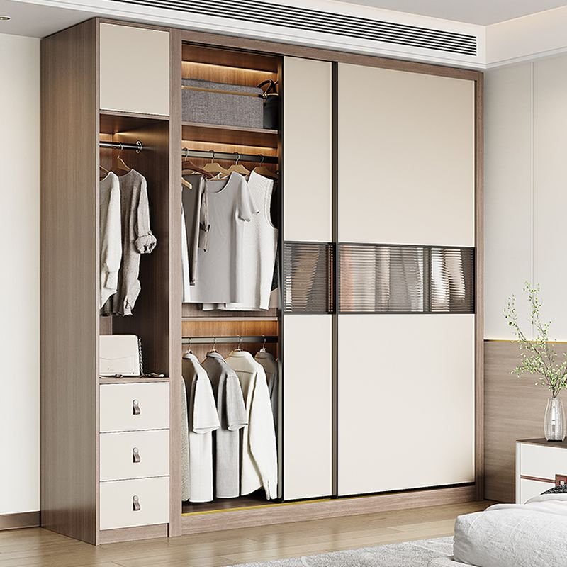 A Symphony of Illumination: The LED Illuminated Sliding Armoire True luxury is defined by the atmosphere it creates. As an LED Illuminated Sliding Armoire, this unit features integrated intelligent lighting that casts a soft, museum-grade glow on your collection. This lighting, combined with the diffraction of the fluted glass, creates a “Radiant Aura” that makes your bedroom feel expansive and serene. The side cabinet, featuring dedicated drawers with ergonomic handles and our signature silent-buffer rails, provides an external organization hub for your most-used accessories, ensuring your morning routine is as fluid as the sliding doors themselves.