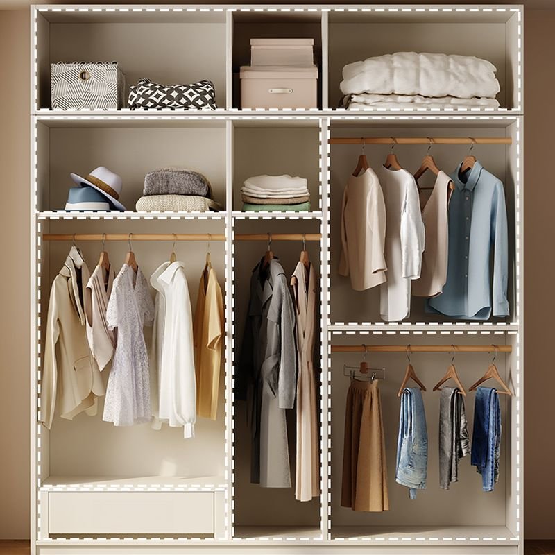 What sets this collection apart from previous iterations is the inclusion of both interior and exterior drawers. In our Soft-Close Dual Storage Wardrobe logic, we address the two distinct needs of modern users. The exterior drawers are perfect for daily essentials like workout gear or casual wear, allowing for quick access without opening the main doors. Meanwhile, the concealed interior drawers provide a protected, dust-free environment for intimate apparel or delicate fabrics. This “zoning” approach is a high-frequency search trigger for “Professional Closet Organization,” making it a magnet for high-intent shoppers.