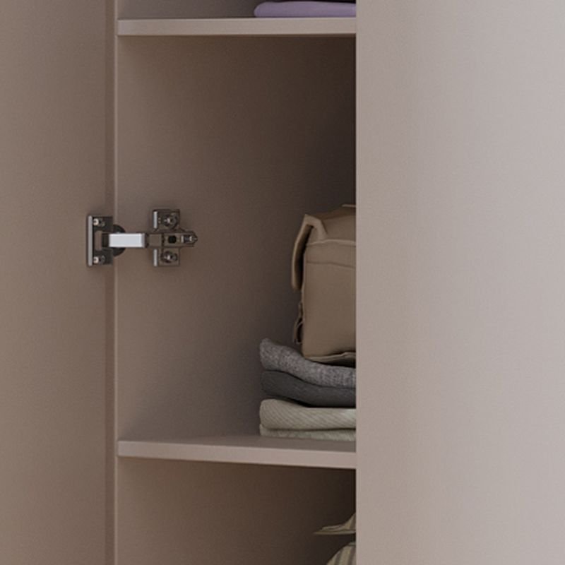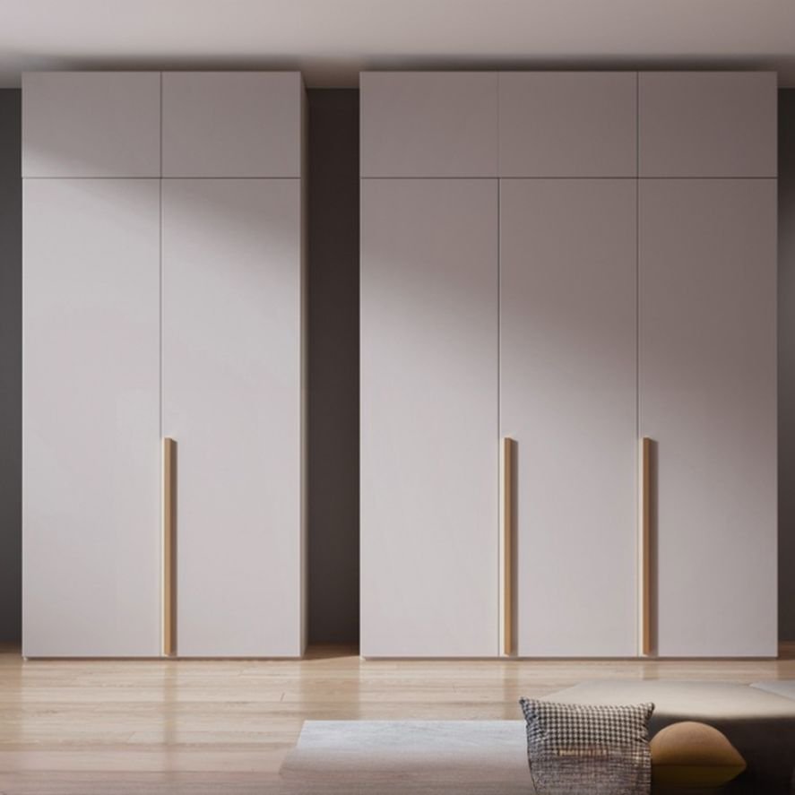 White can sometimes feel clinical, but our Modern Matte Grey Armoire brings a sense of grounded luxury. This palette is particularly popular in urban GEO markets like Chicago, Toronto, and London, where “Industrial Chic” and “Modern Minimalist” styles dominate. Standing at a commanding 96″ (214cm) or 77″ (196cm), this wardrobe creates a seamless, built-in appearance. The light grey tone acts as a perfect canvas, allowing your colorful garments or decorative items on the side shelves to pop while maintaining an overall atmosphere of calm and order.