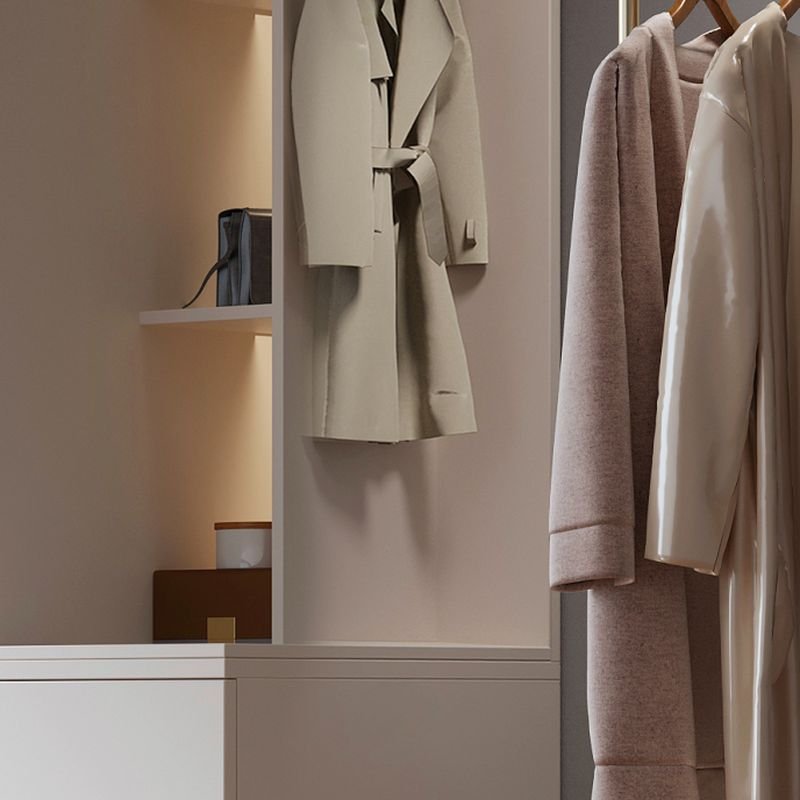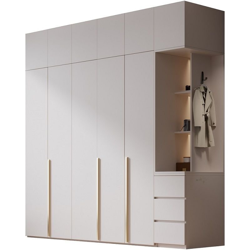 Efficiency is the cornerstone of modern living. Our Tall Grey Closet with Side Shelves is engineered for those who demand more from their furniture. The integrated side section—complete with soft-close drawers—functions as a high-end dressing station or an open-access gallery for your most-used items. With 20 different width configurations, this system ensures that even the most challenging floor plans can benefit from a Minimalist Urban Grey Storage solution that looks like it was custom-built by an interior designer.