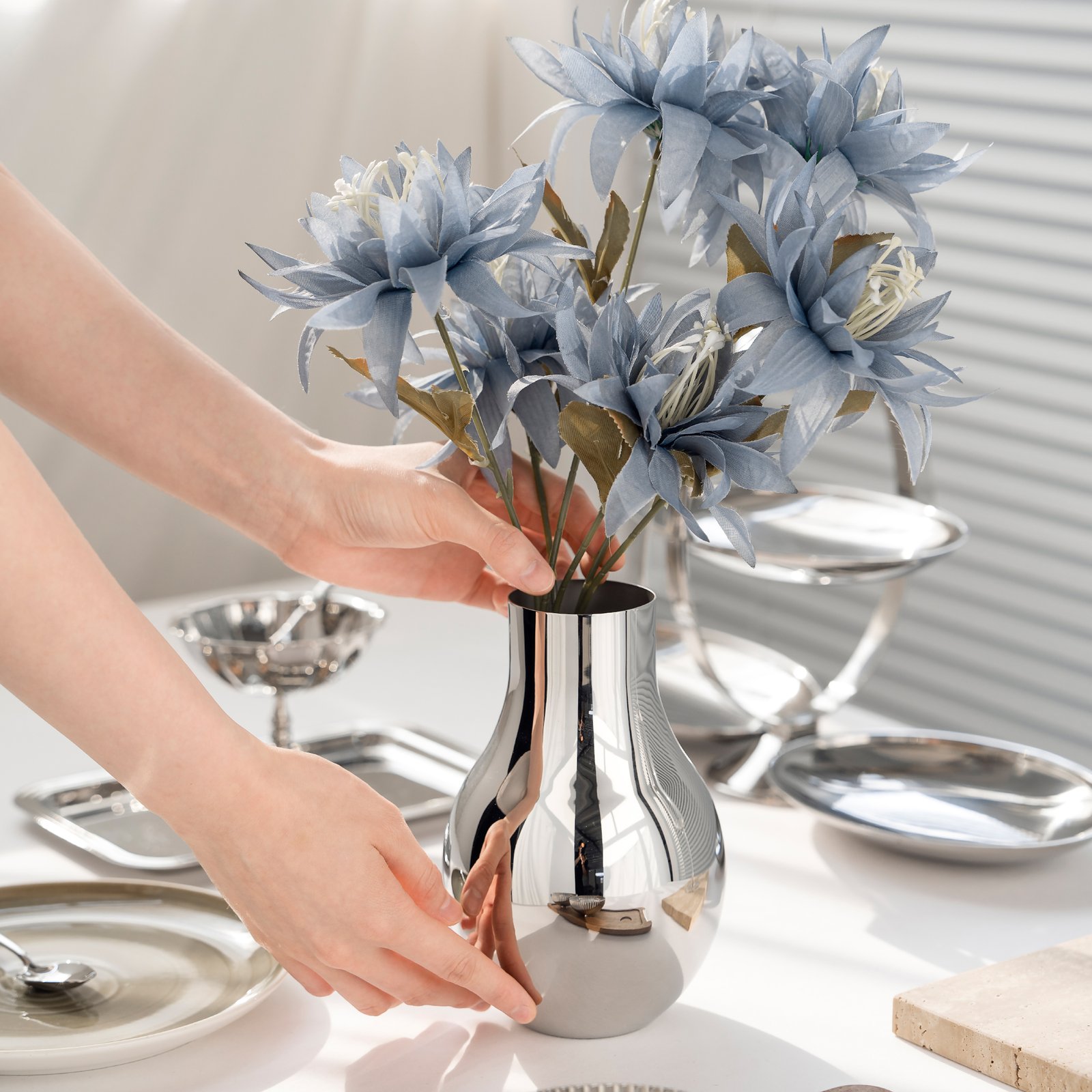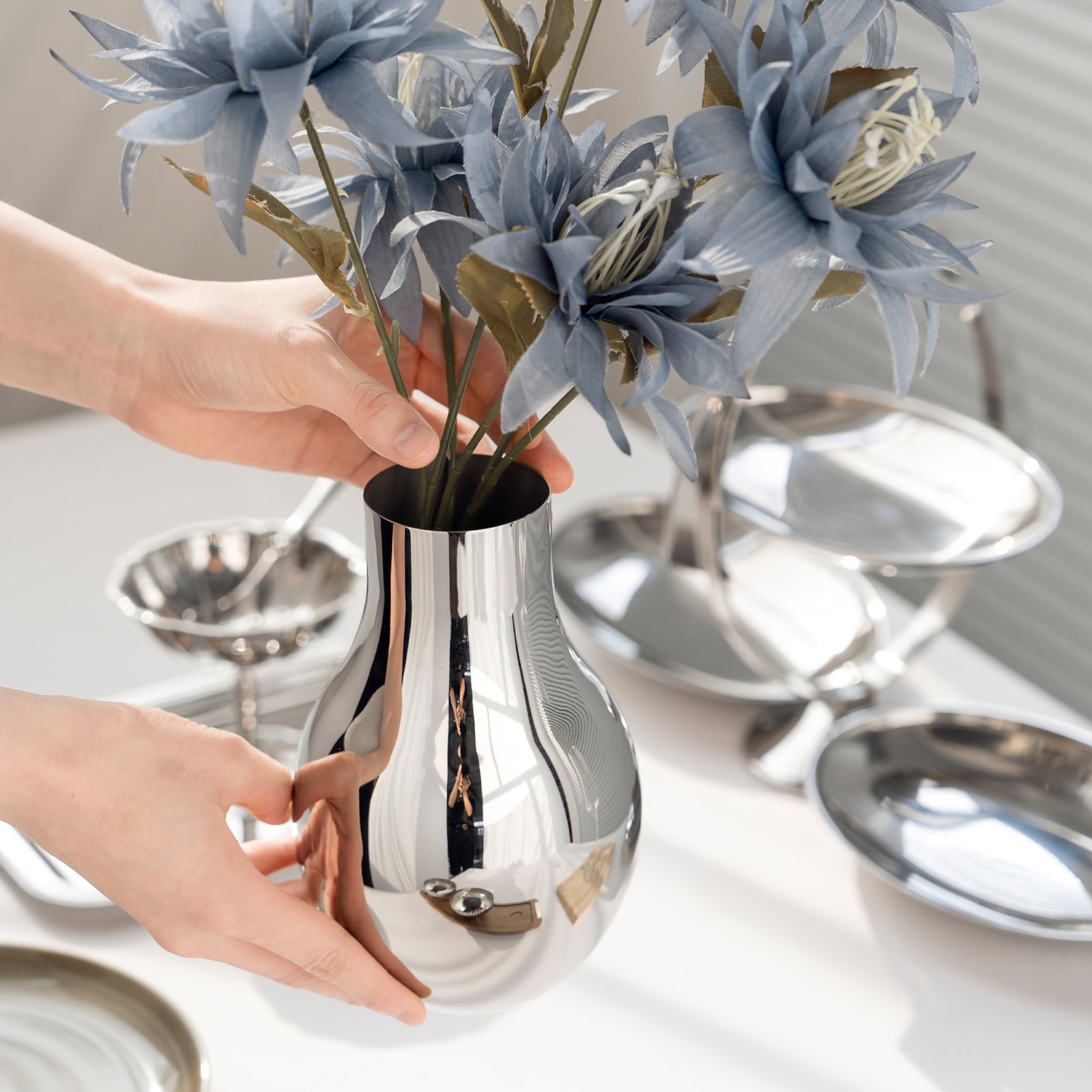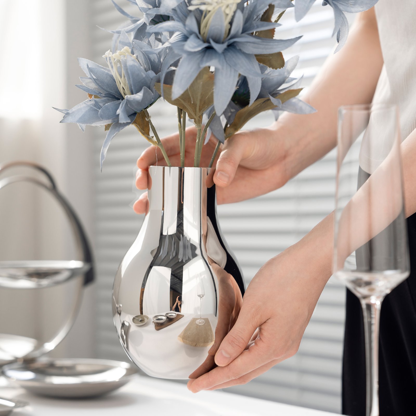Metal stainless steel creative bulb-shaped vase, home living room dining table decoration, wabi-sabi style flower arrangement, housewarming gift