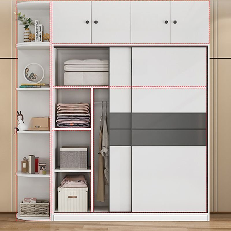 Graceful Minimalist White Sliding Door Wardrobe with Side Display Shelves – Versatile 71″ to 86.5″ Modular System in 18 Styles