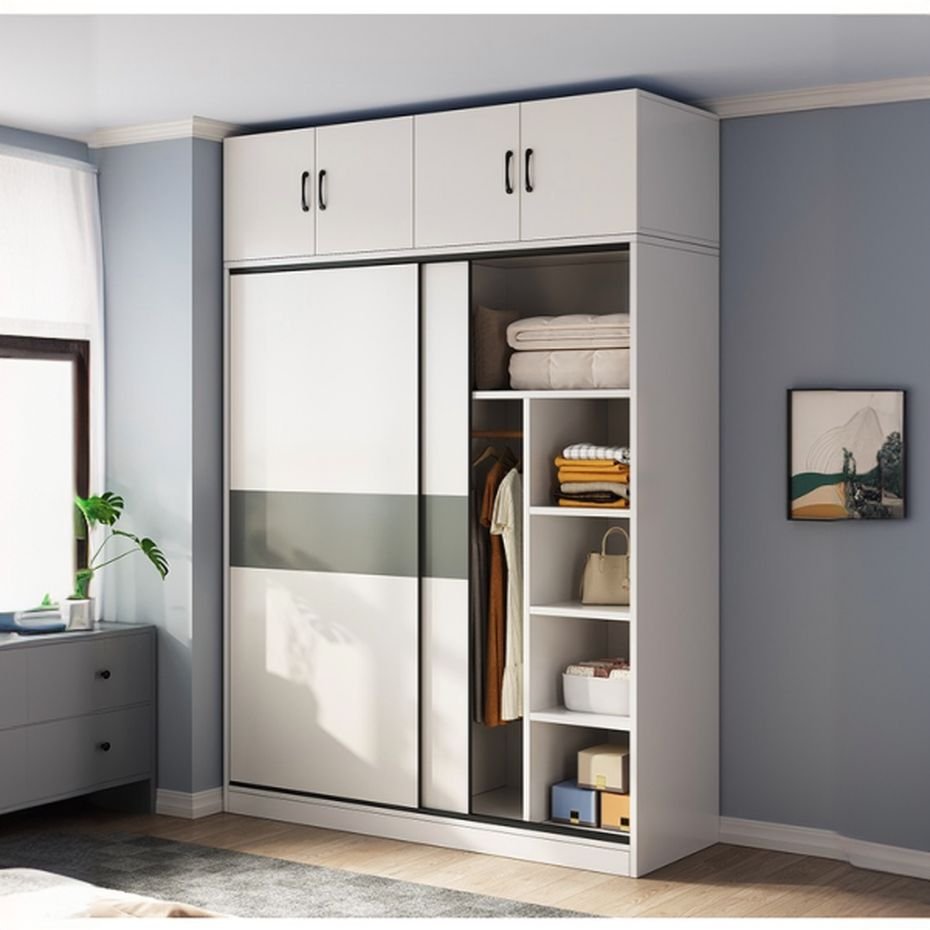 Silent Engineering and Sophisticated Design Every interaction with our Pristine White Sliding Door Wardrobe is designed to feel effortless. The high-performance sliding tracks are engineered for a “Silent Glide,” while the top-tier hinged doors—standard-equipped with premium cushioned hinges—provide a soft-close vault for seasonal storage. By using a handle-equipped design for the main doors and drawers, we offer a classic, tactile engagement that feels solid and dependable. The adjustable internal shelving allows the unit to grow and evolve alongside your fashion collection, making it a permanent fixture of your home’s architecture.