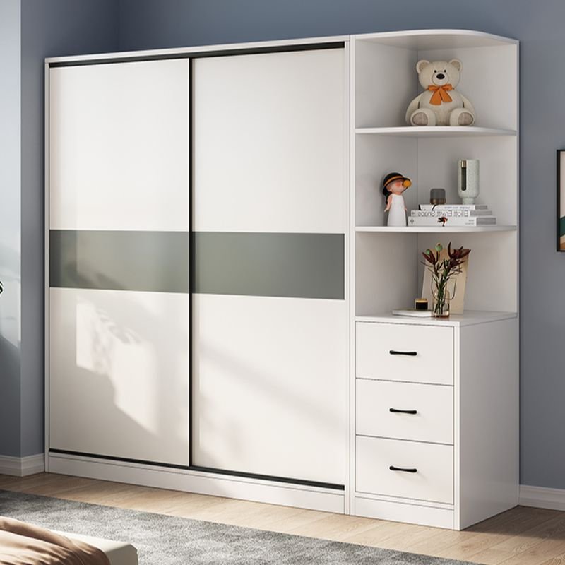 Pristine White Sliding Door Wardrobe with Integrated Side Drawers – Stunning 71″ to 86.5″ Modular Bedroom Closet in 26 Configurations