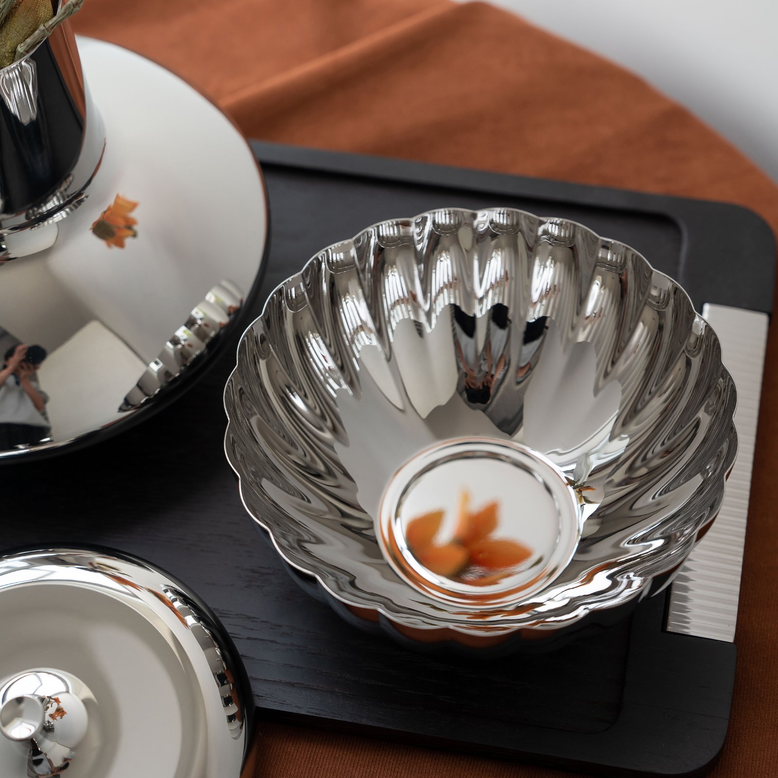 Creative luxury stainless steel wooden restaurant seasoning bowl and jar, home seasoning seasoning, nut snack storage bowl, Western dining table seasoning jar