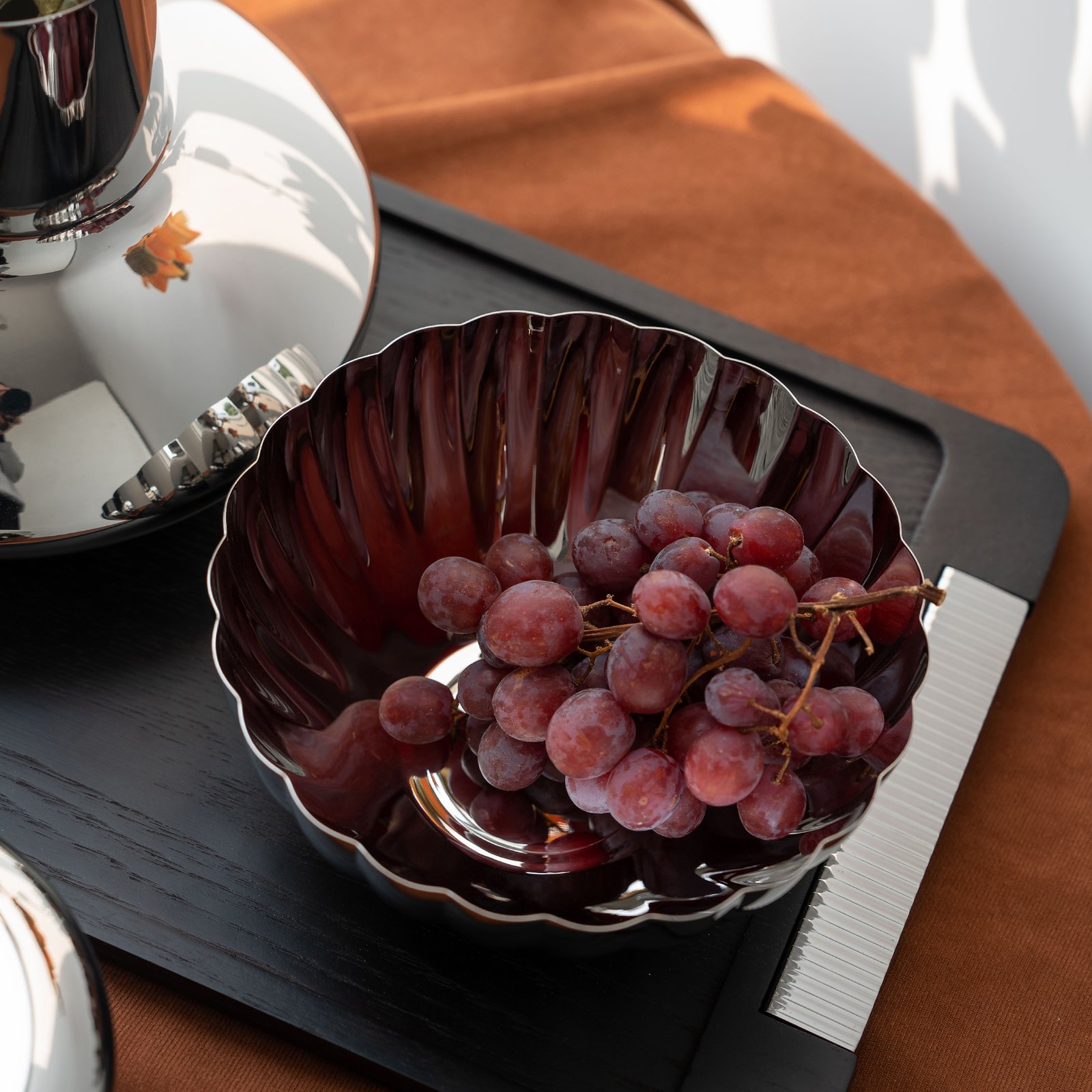 Simple and creative stainless steel papaya-shaped striped fruit plate, home light luxury European-style dried fruit plate, home living room coffee table, creative fruit basin, candy plate, home decoration ornaments