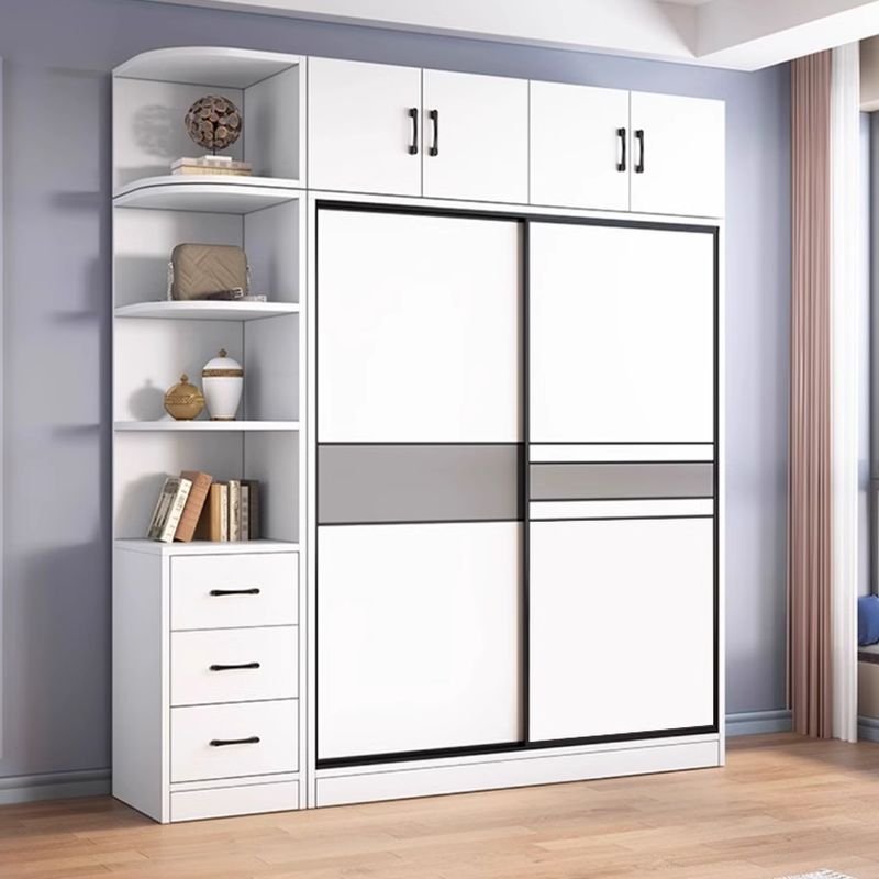 Sophisticated Two-Tone Sliding Door Wardrobe in White & Grey – Premium 79″ to 94.5″ Customizable Closet with 20 Size Options