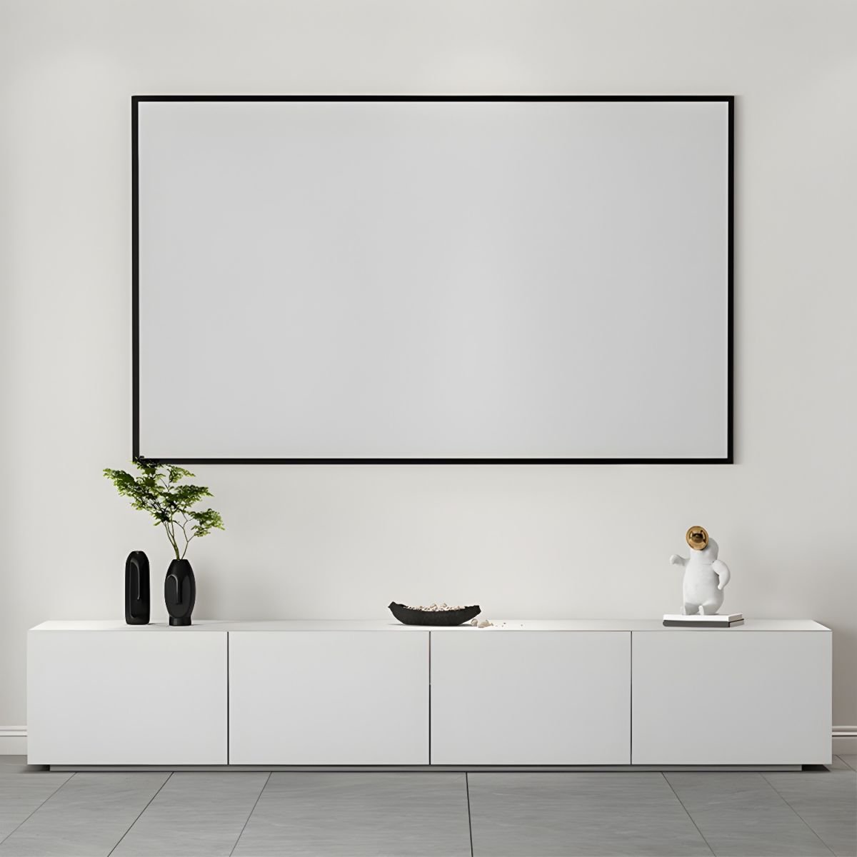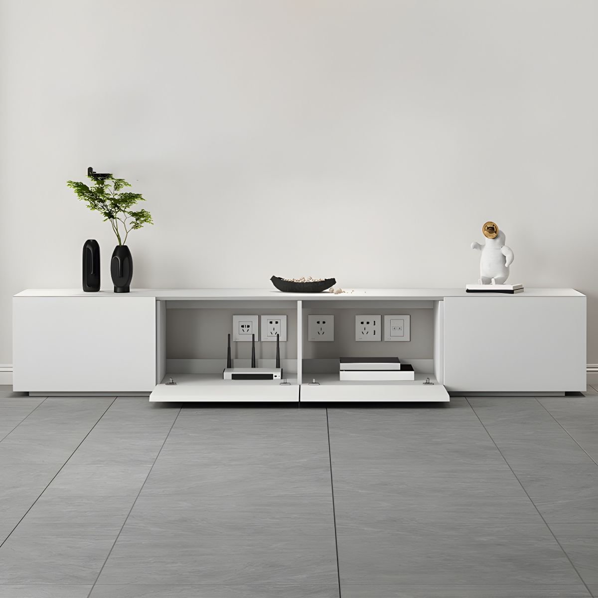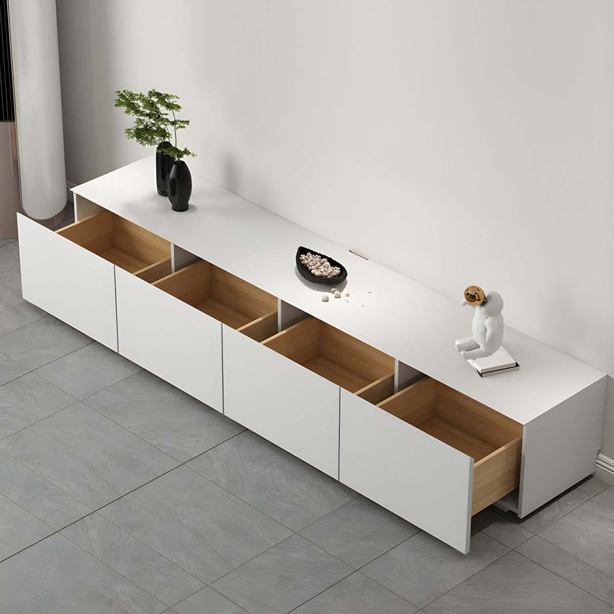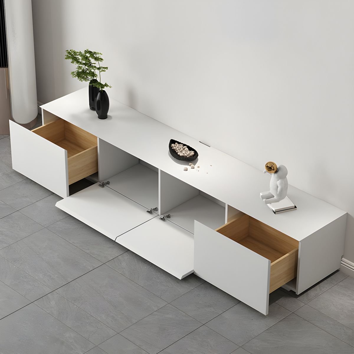 White Art Deco Wooden TV Stand with 2 Drawers and 2 Cabinets