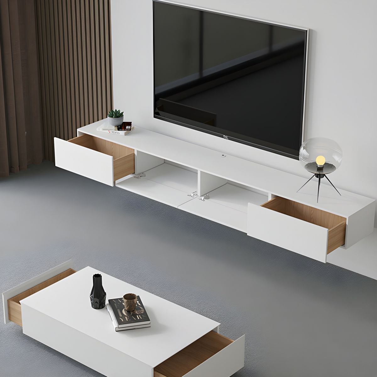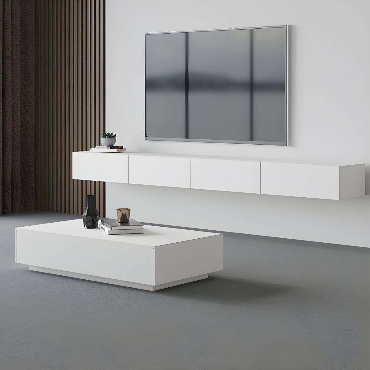 White Wood TV Stand with 4 Drawers for Modern Entertainment Centers