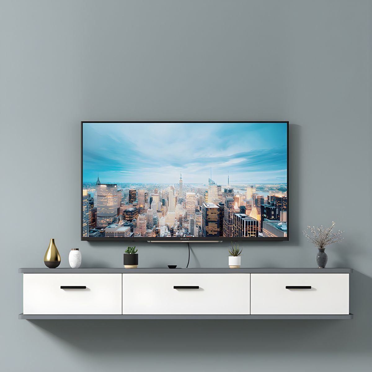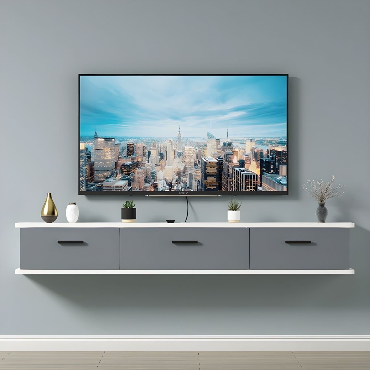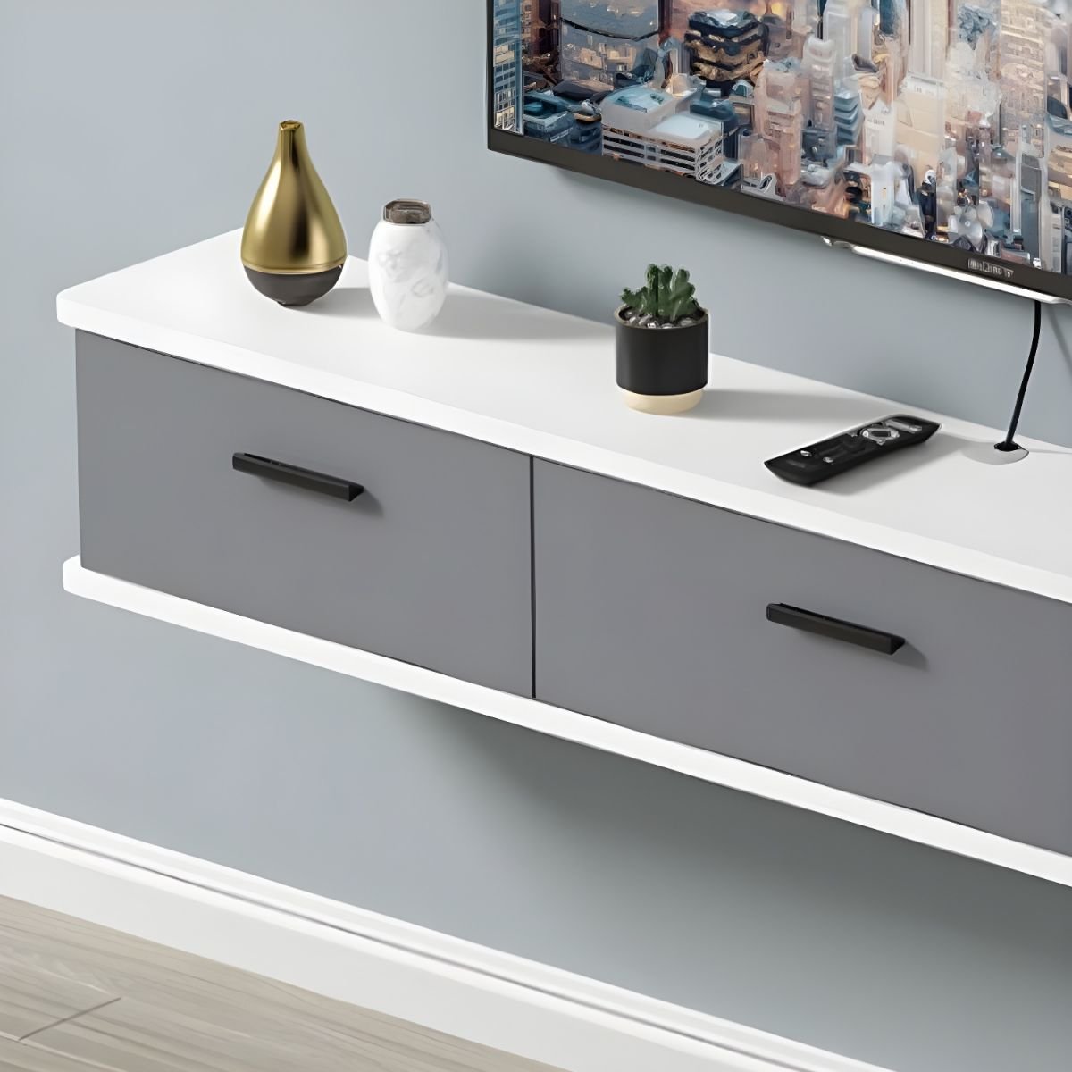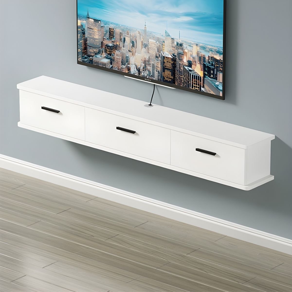 Modern Wall-Mounted Wood TV Console with Drawers and Cable Management