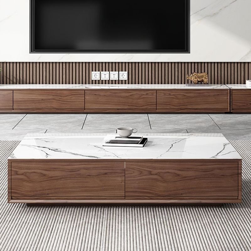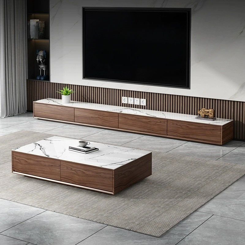 Auburn Natural Wood Rectangle TV Stand with 4 Drawers, Cable Management, and Light