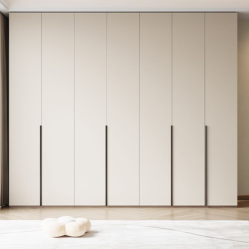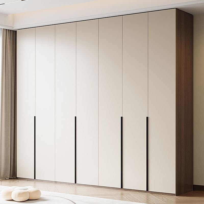 White Minimalist Manufactured Wood Wardrobe Closet with Interior Shelves,7 Soft Close Doorsand Clothing Rod