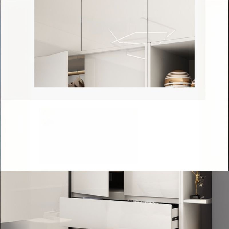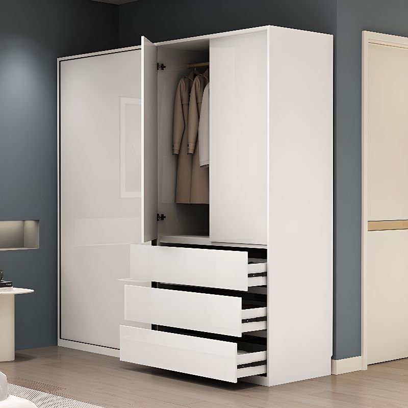 White Modish Wood Wardrobe Cabinet with 3 Soft Close Drawer, 2 Soft Close Door, Interior Shelves, and Clothing Rod Armoire
