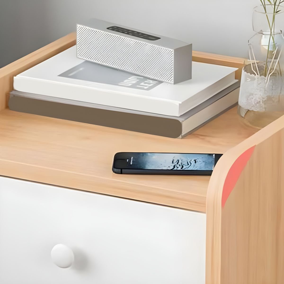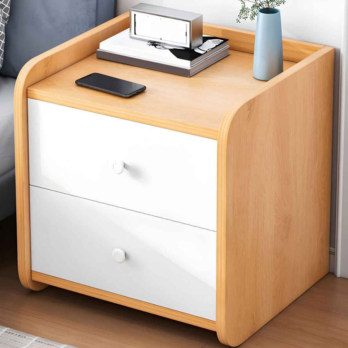 Wood grain Nightstand in Bedroom Wooden Sofa Side Storage with Sliding Drawers
