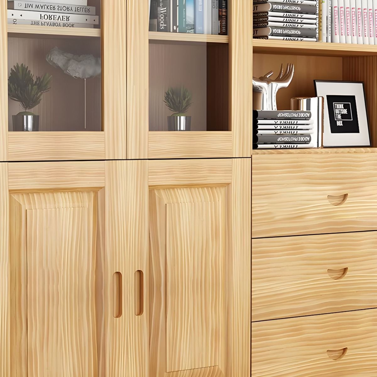 Modern Natural Wood Wardrobe Armoire with Sliding Doors, Drawers, and Shelves
