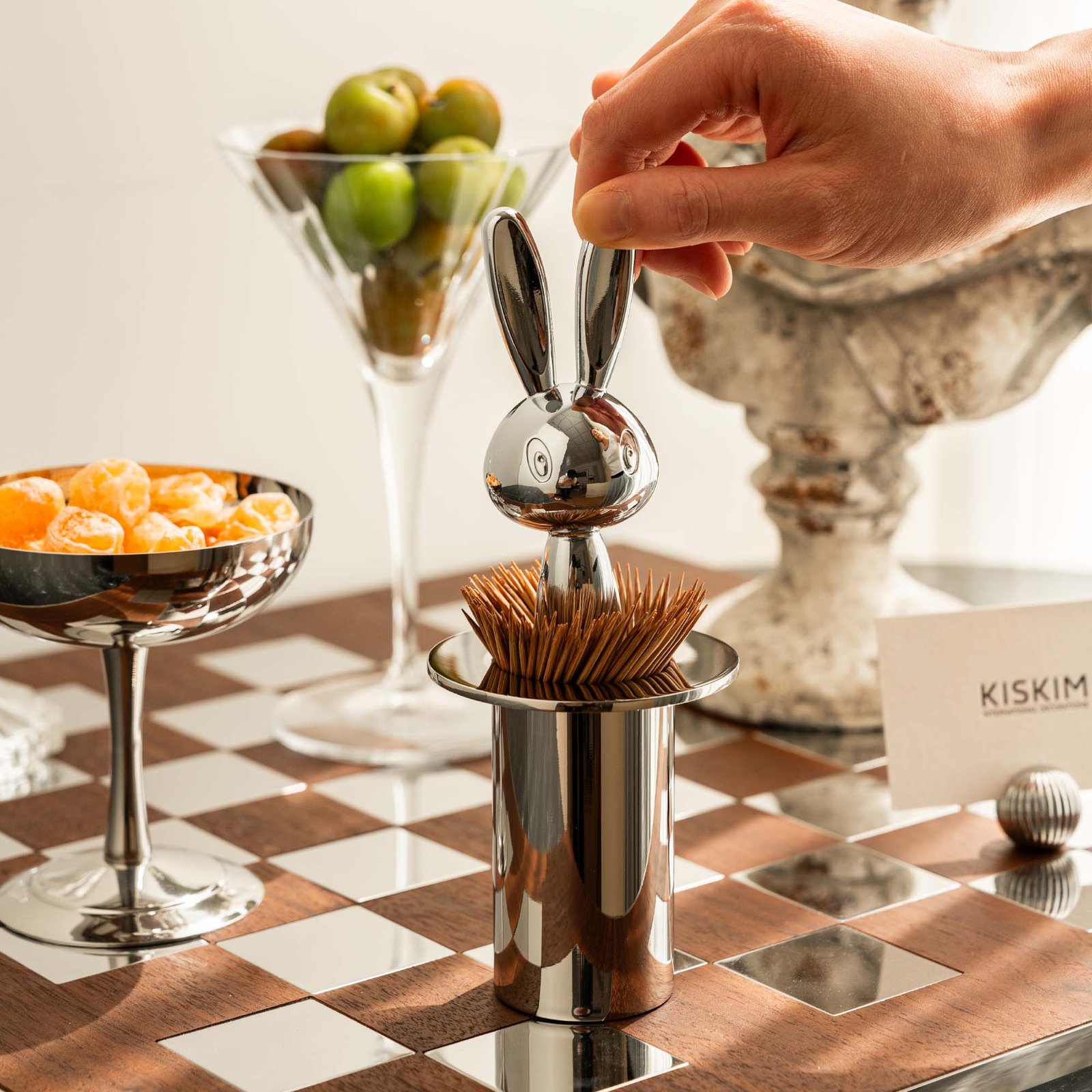 Creative stainless steel cute rabbit-shaped toothpick holder, toothpick box, light luxury push-type automatic pop-up toothpick storage jar, home decoration item
