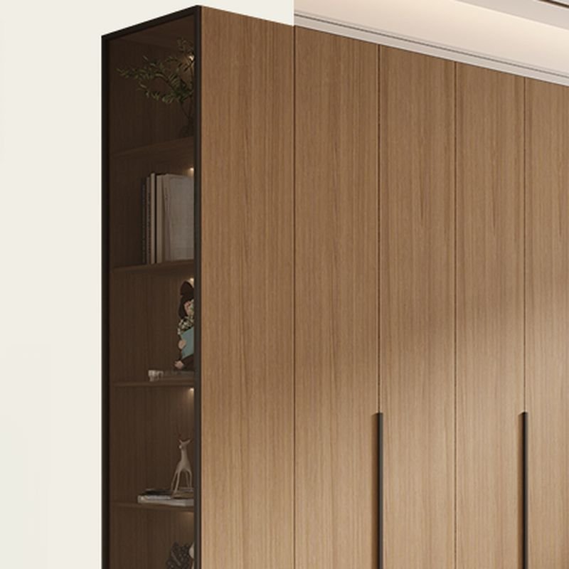 Tan Modish Manufactured Wood Armoire Cabinet with Soft Close Door, Interior Shelves, and Clothing Rod