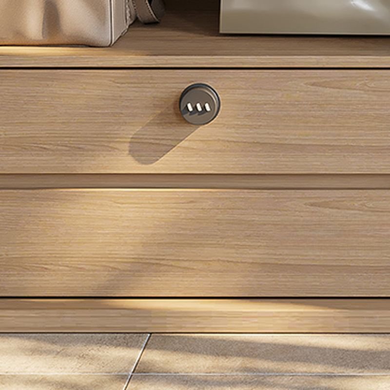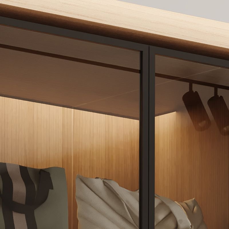 Modern Natural Wood Wardrobe Armoire with Sliding Doors, Drawers, and Shelves