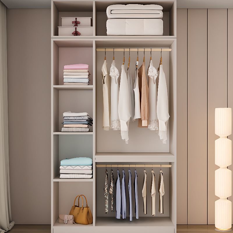 Contemporary Hinged Doors Engineered Wood Storage Cabinet with Garment Rod