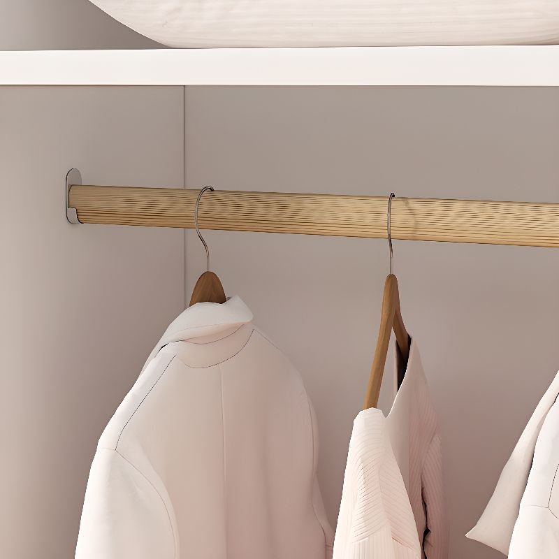 Simple Oak Wood Wardrobe with Soft Close Door, Interior Shelves, and Hanging Rod