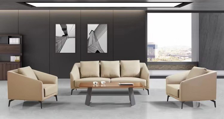 Rest Area Modern Office Sofa Set Genuine Leather Material Office Furniture Reception Room Sofa Set