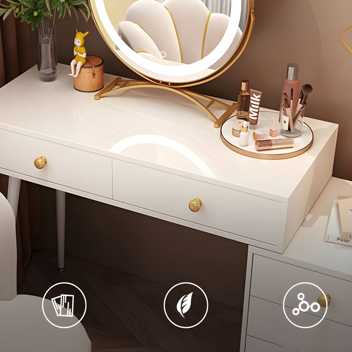 Let’s explore the key practicalities that make a well-designed makeup vanity an indispensable asset for your home:
