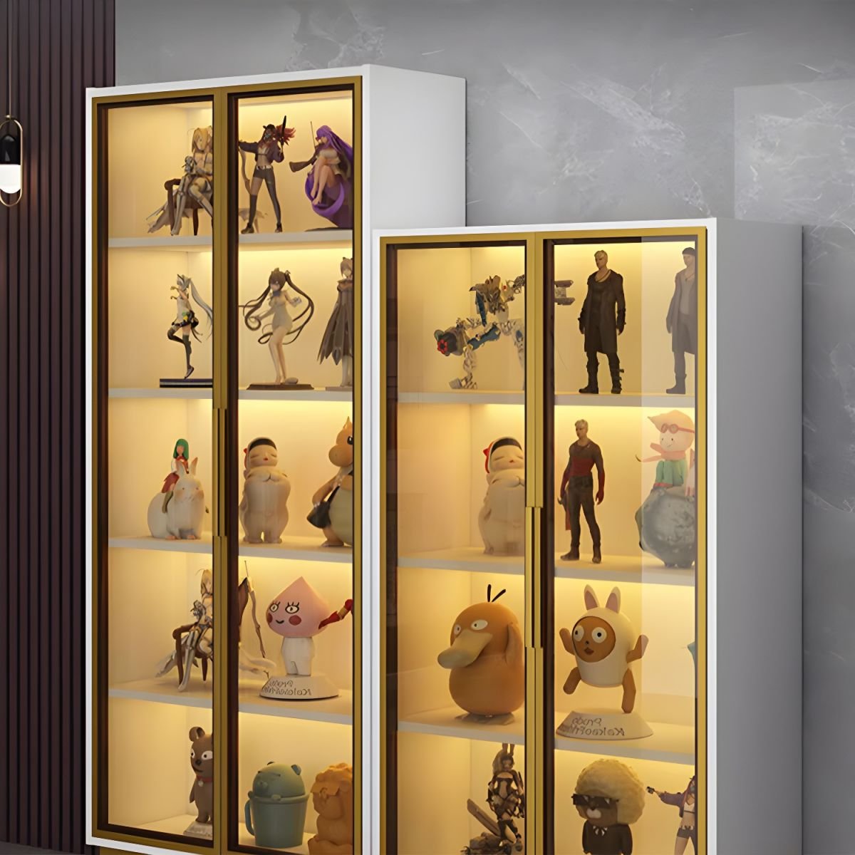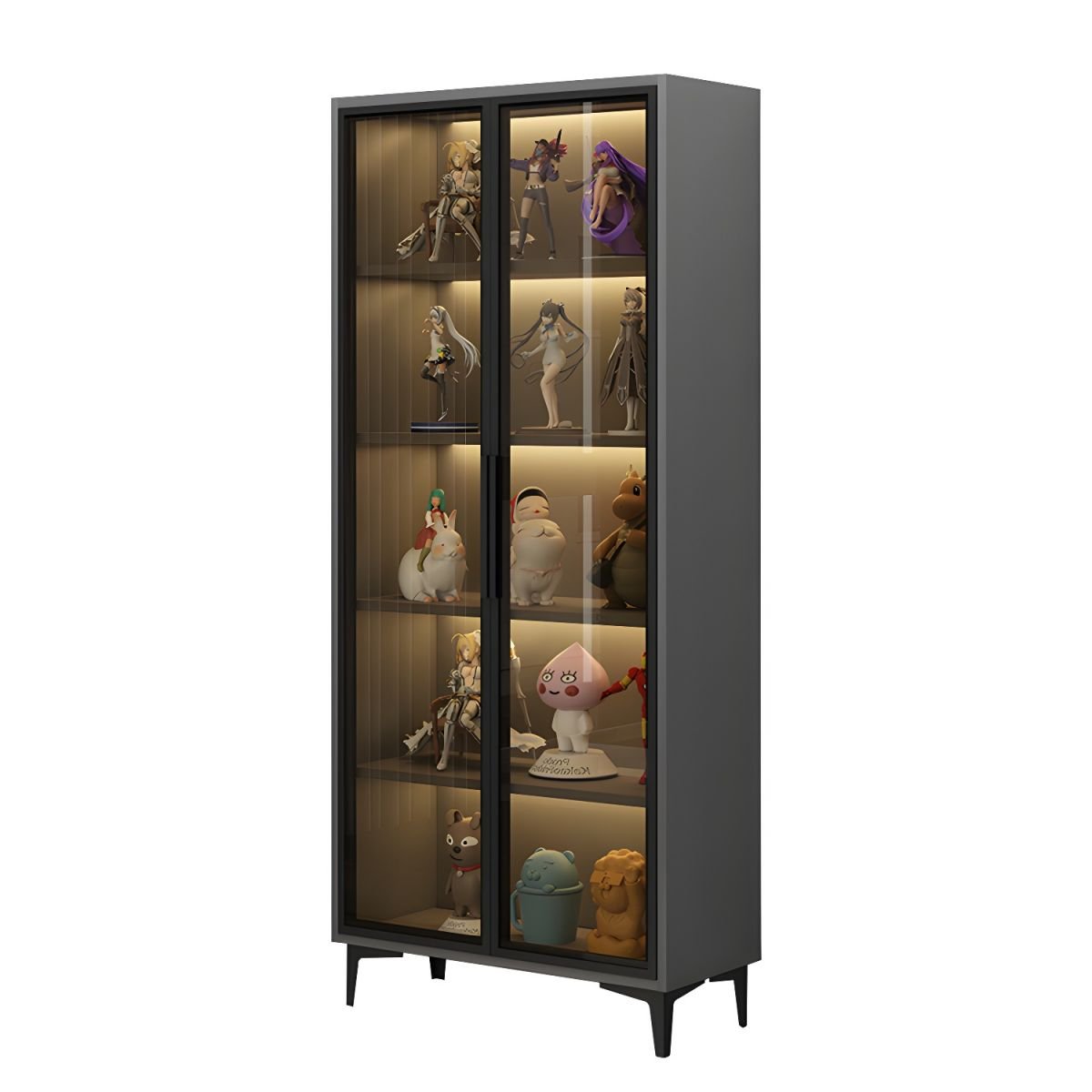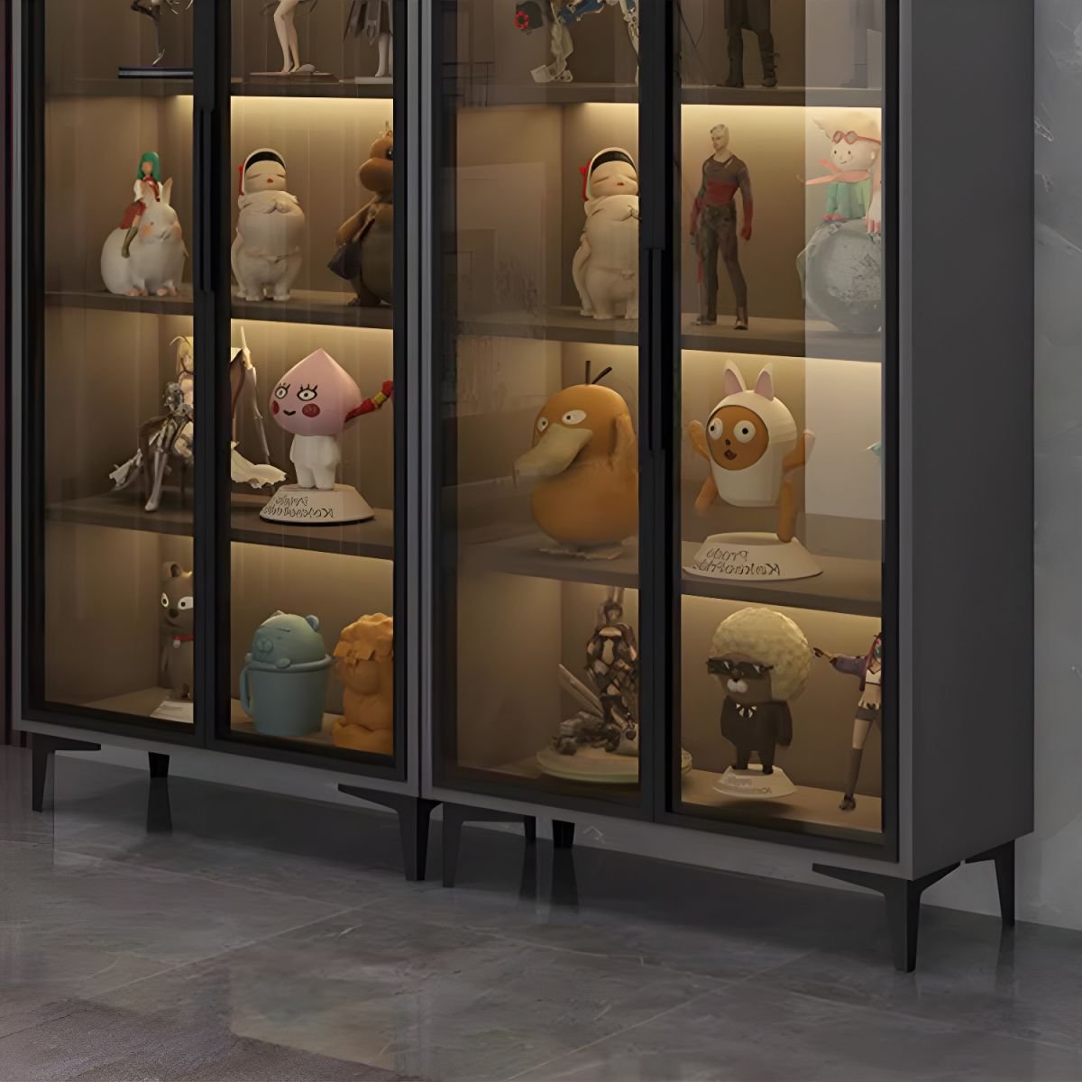 Storm Gray Manufactured Wood Wardrobe With 6 Glass Doors Independent Armoire Cabinet with Interior Shelves and Clothing Rod
