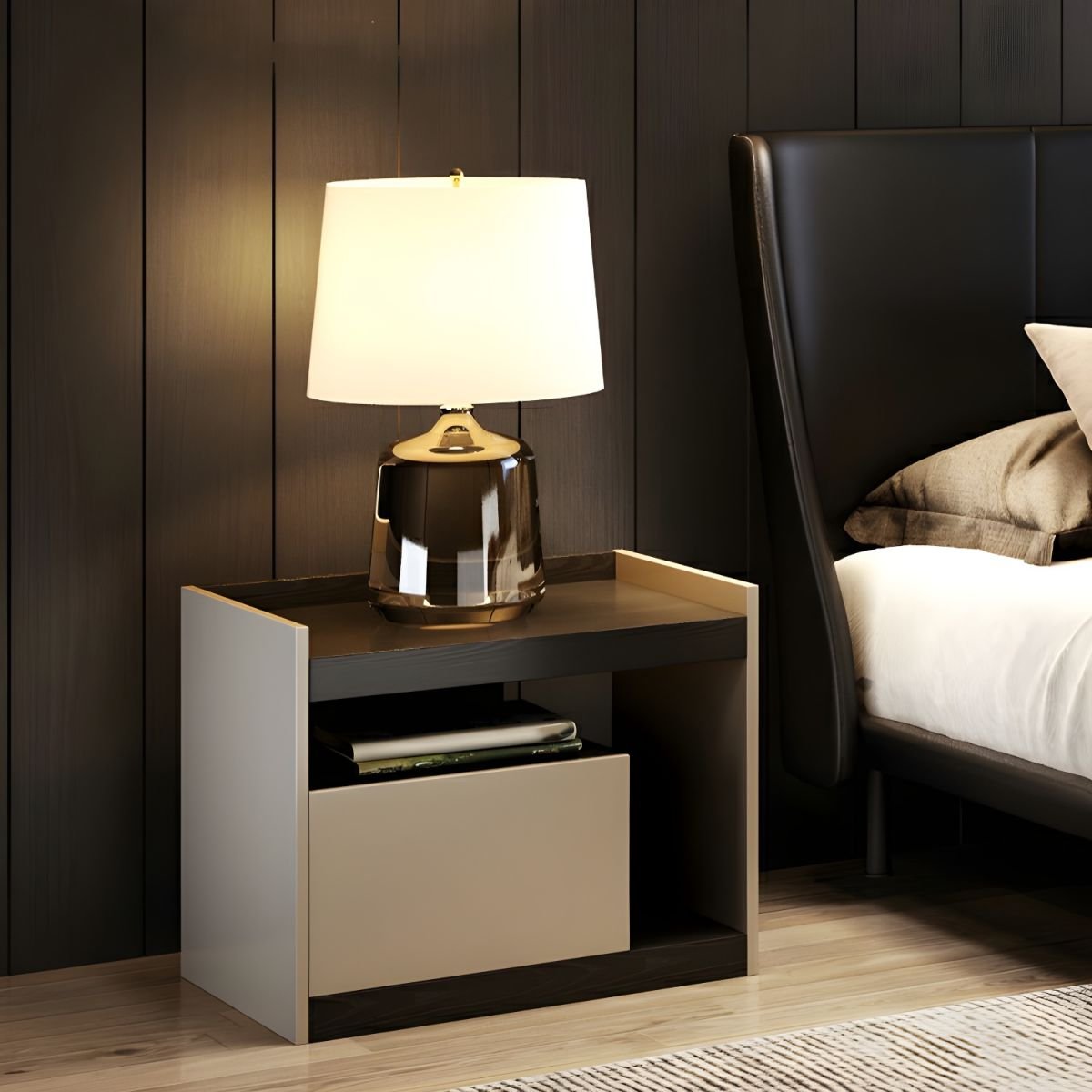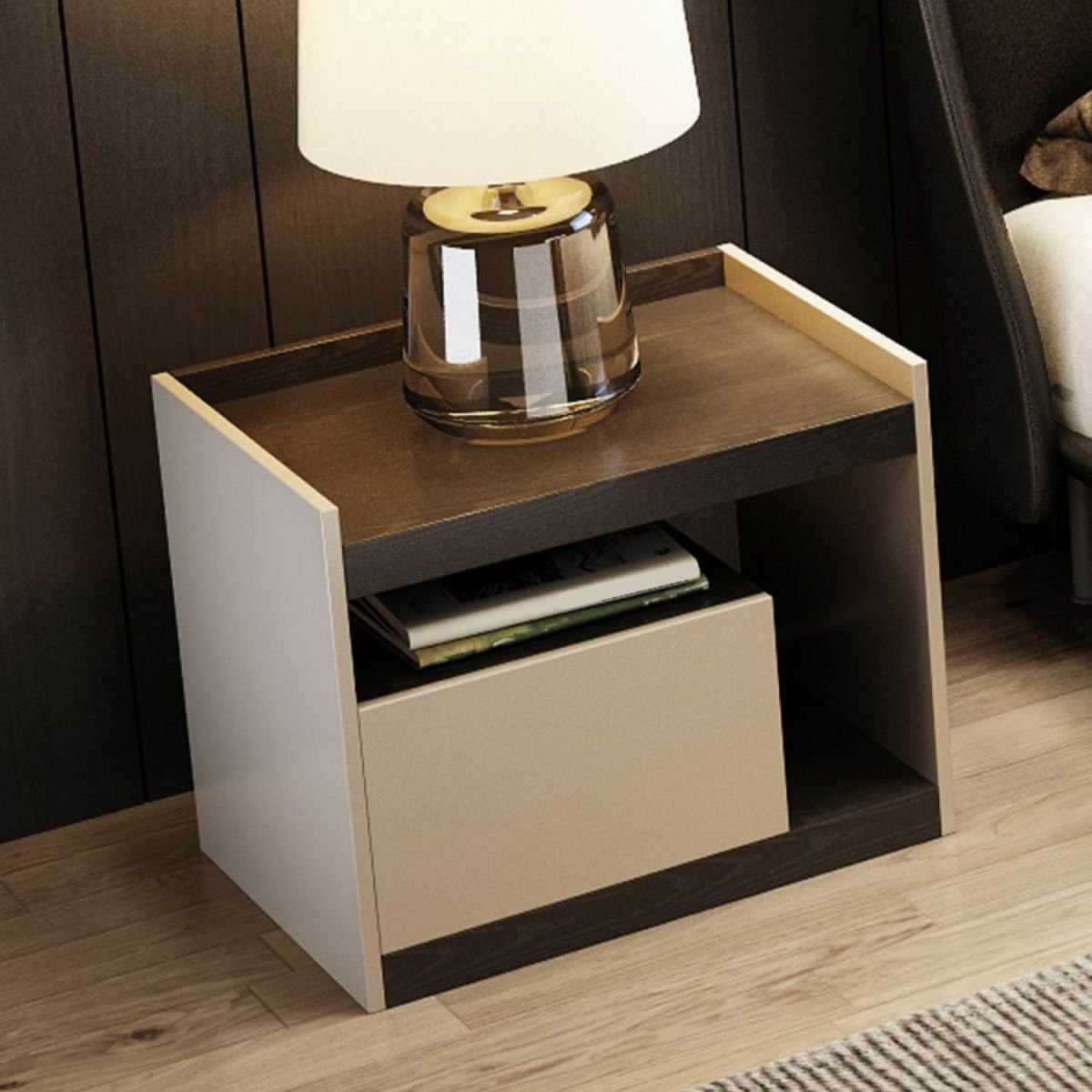Modern Nightstand in Bedroom Sofa Side Storage with Sliding Drawers