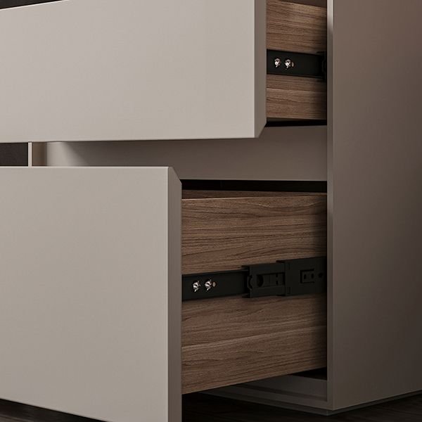 Free Standing Minimalist Cream Wood Wardrobe with Interior Shelves, Soft Close Drawer and Clothing Rod