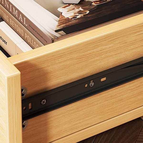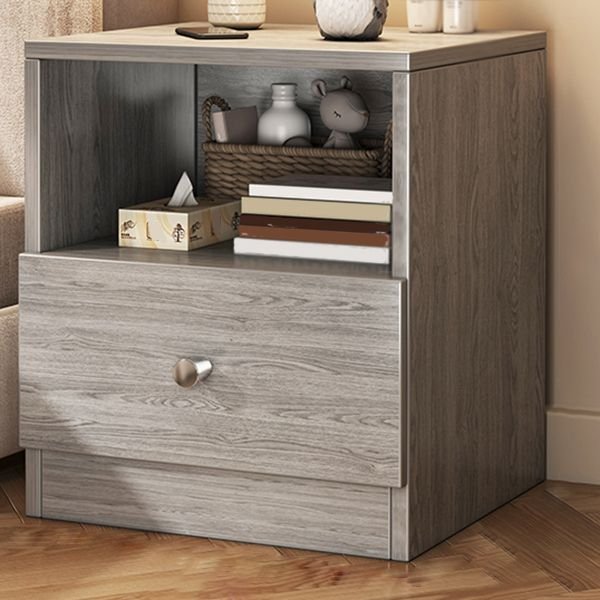 Simplistic Compact Beige Wood Nightstand with 1 Drawer Storage for Small Spaces