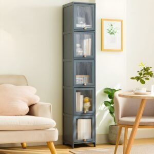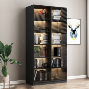 - Modern wooden bookcase with glass doors and lights. Stylish storage for your favorite reads, adding a warm glow to any room. Perfect for organizing and displaying your collection beautifully.