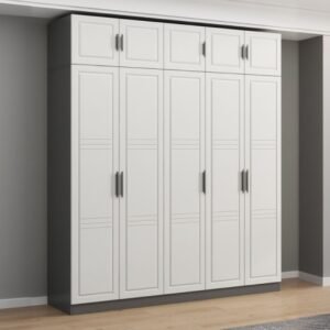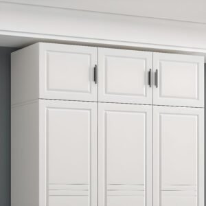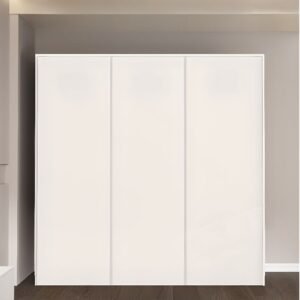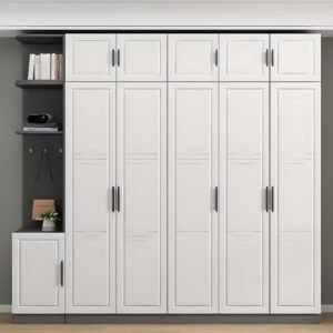White Minimalist Manufactured Wood Wardrobe Closet with Interior Shelves,7 Soft Close Doorsand Clothing Rod