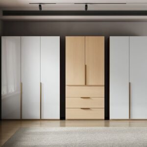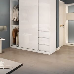 White Simple Timber Wardrobe with 3-Drawer/4-Drawer, Soft Close Door, Interior Shelves, and Clothing Rod