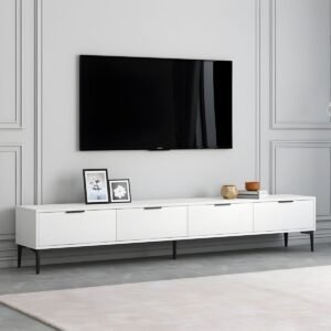 White Wood TV Stand with 4 Drawers for Modern Entertainment Centers