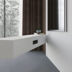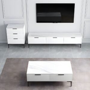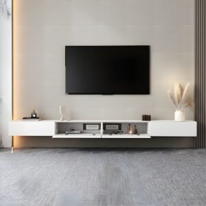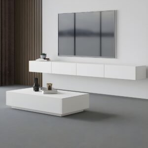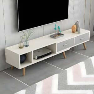 White Modern TV Stand with Low Height, Drawers, and Cable Management – Easy Full Assembly